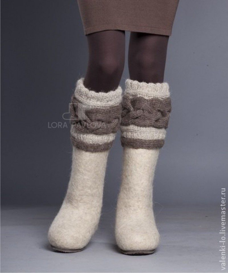 Верхня частина чобіт, халяви (гольфики). Вони повинні бути теплими, плотної в"язки. Бажано ажурні (косичкою у поєднанні з іншими візерунками). Слугуватимуть як продовження халяв валянок, наколінники.