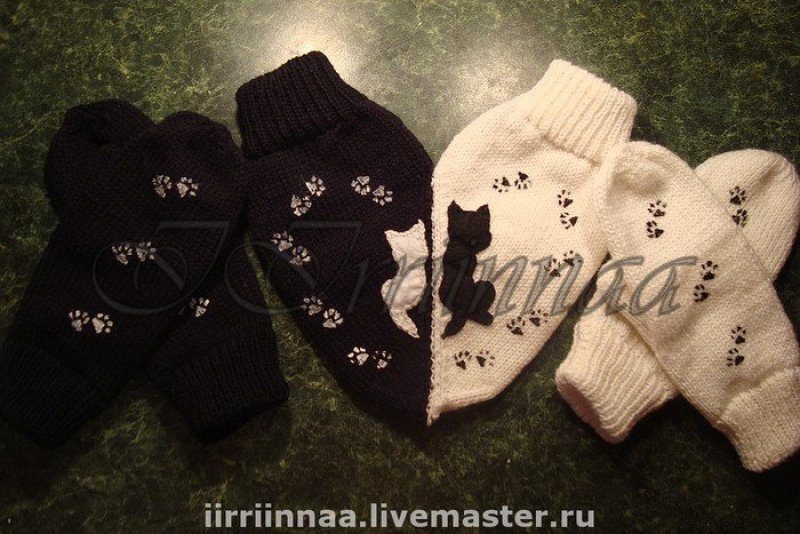 чтобы варежки были как на картинке в прикрепленном файле. надо одна общая варежка и по 2 белые(женские) и черные (мужские).