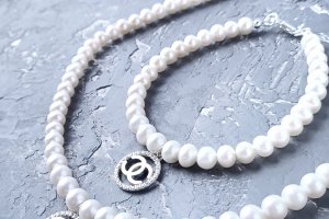 Комплект из натурального жемчуга в серебре колье и браслет