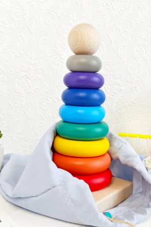 Детские пирамидки известны каждому еще со времен собственного детства. Поэтому Вы можете предположить, что такую вещь несложно отыскать в магазине товаров для детей. Разве что ограничено количество видов. А для поиска оригинальных вариантов воспользуйтесь предложениями мастеров, которые создают развивающие игрушки своими руками. Они учитывают предпочтения своих детей, особенности их развития и советы специалистов. Такая детская пирамидка авторской работы поможет ребенку развить:
