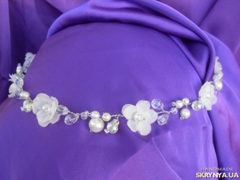 Здравствуйте,мне очень понравилась ваша робота мини -веточка ,я бы очень хотела похожий на неё веночек,только шире немного ,как на одной из фото,но с такими цветами как у вас(или шифоновыми,главное не фомиан) .