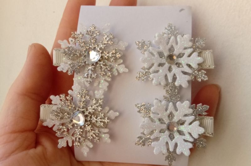 Снежинка из глитерного фоамирана на фетровой основе закреплена на зажим (3.5 см).
