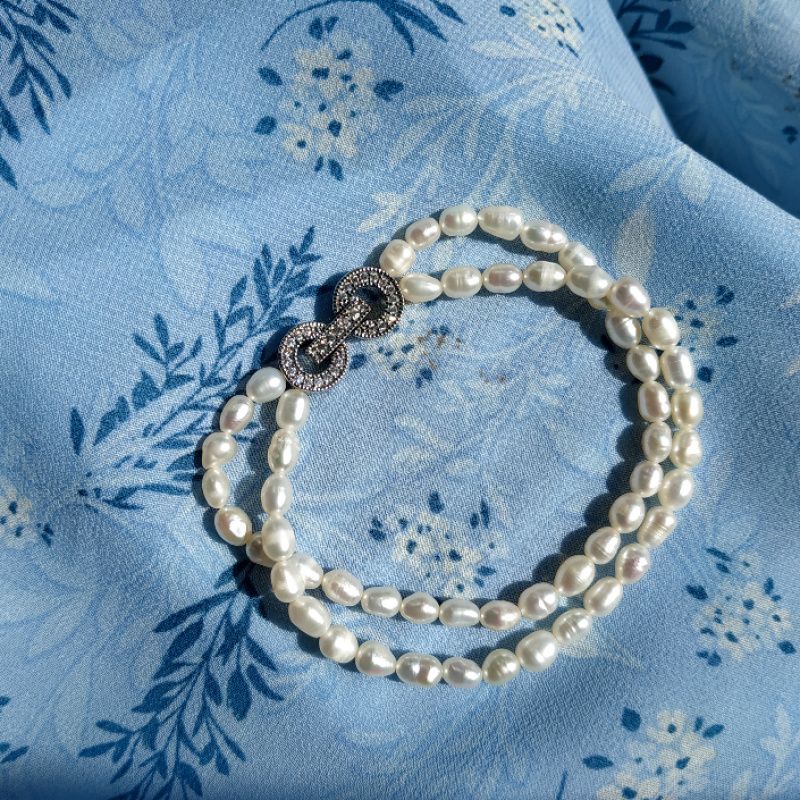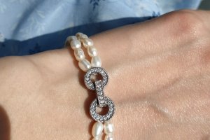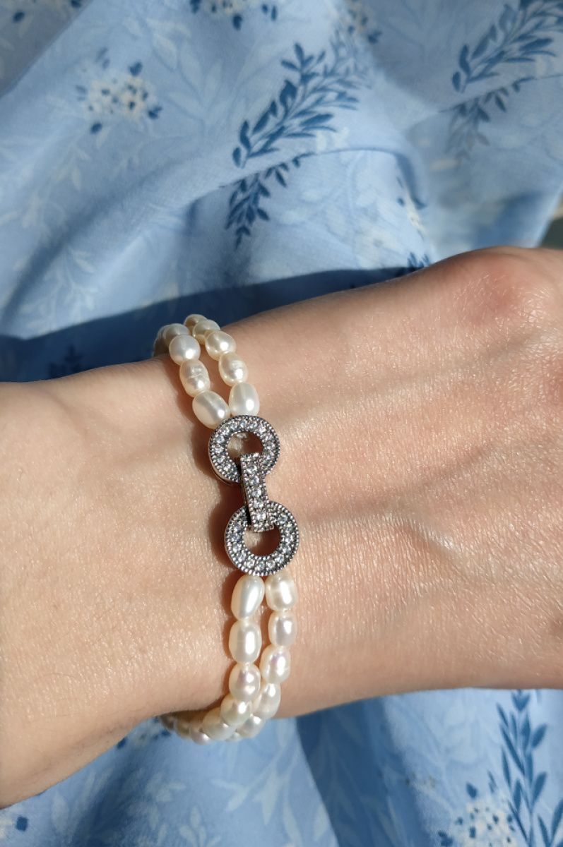 Роскошное украшение, которое никогда не выйдет из моды. Браслет ручной работы из натурального речного жемчуга и очень красивой застежки Застежка очень удобная и надежная. Изготовлена из гипоаллергенного сплава с россыпью фианитов, не темнеет. Идеально подойдет как для праздничного образа, так и на каждый день. Прекрасно подойдет к образу невесты. Также станет отличным подарком для жены, девушки, мамы, сестры. Браслет отправляем в красивую упаковку. Длина – 17 см. Возможно изготовление конкретно под вашу ручку. Можно подобрать чокер (ожерелье) в комплект к браслету. Обращайтесь, буду рада помочь.
