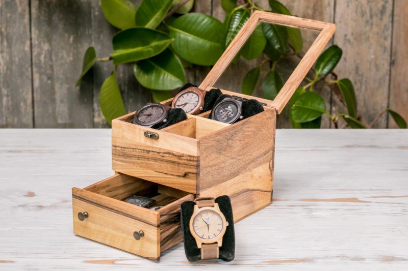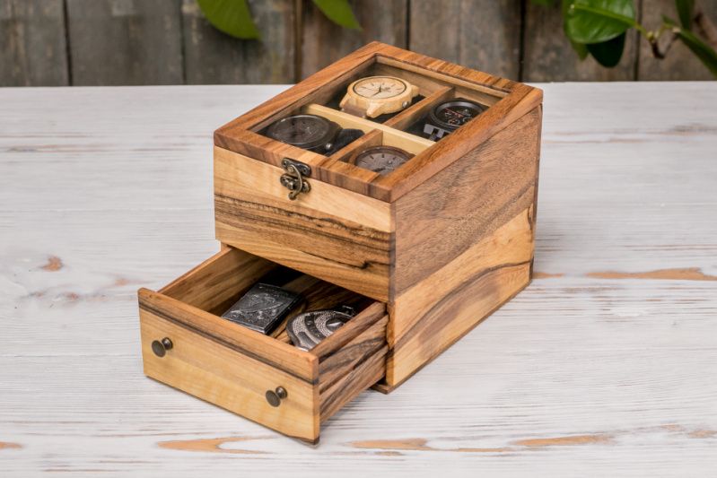 Органайзер для 4-х часов с шухлядой и стеклянной крышкой