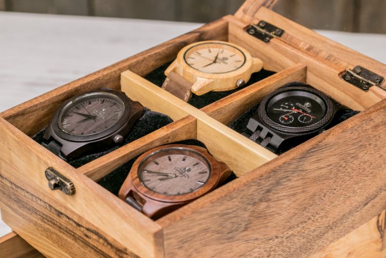 Деревянный органайзер для часов с ящиком - незаменимый аксессуар. Не так просто найти уютное место для всех ежедневных аксессуаров - наручных часов, запонок, ремешков, браслетов, бабочек и очков. Специально для этого мы разработали органайзеры из дерева для хранения всех Ваших аксессуаров в одном месте. Размер нижней шухлядки в зависимости от количества часов отличается по ширине, но одинаковый по глубине и высоте, размер ячейки для часов стандартный - 60х80х65 мм. Подушечки для часов сделаны из велюра и идут в комплекте с деревянной шкатулкой. Стандартные позиции рассчитаны для 4, 6, 8, 10 и 12 часов.