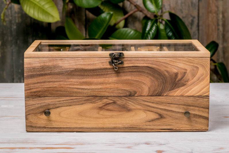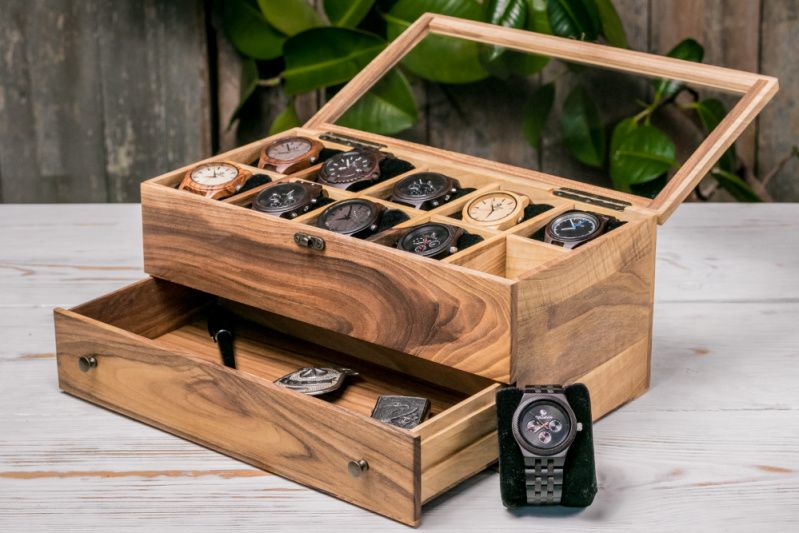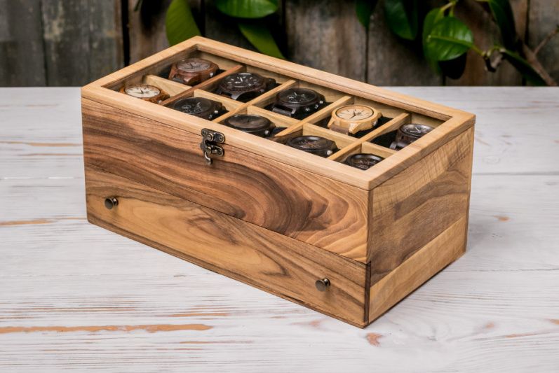 Коробочка для часов со стеклянной крышкой с ящиком