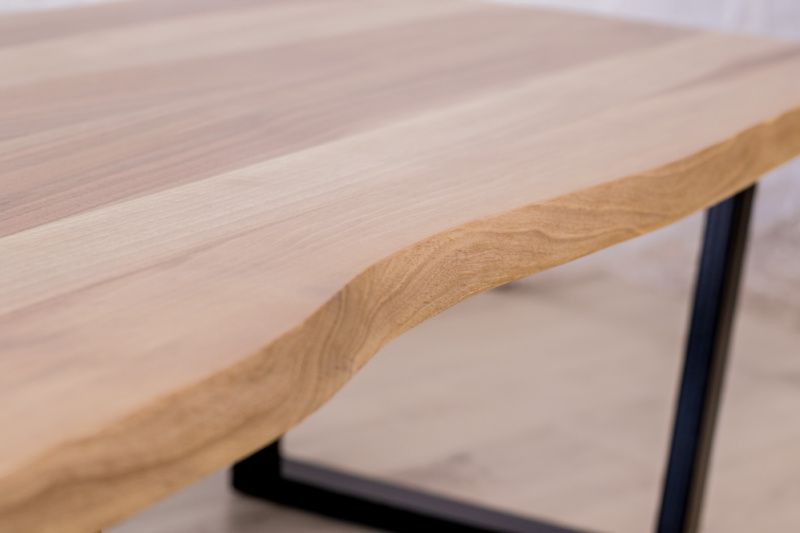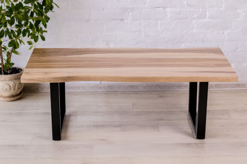 Качественный журнальный кофейный дизайнерский лакированный офисный лофт loft design live edge стол столик с металлическими ногами ножками из дуба сосны ореха в офис домой