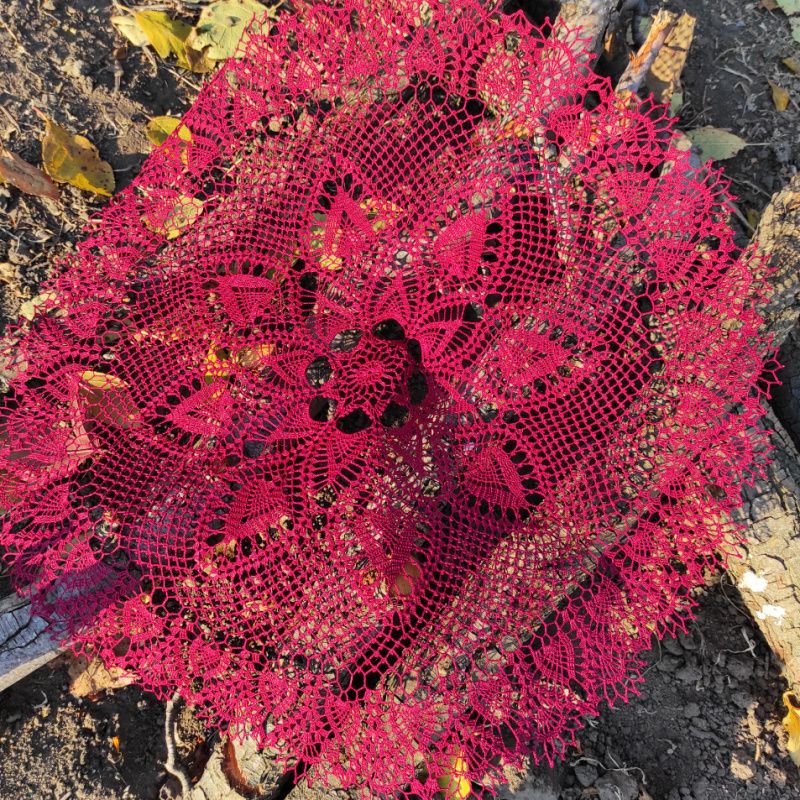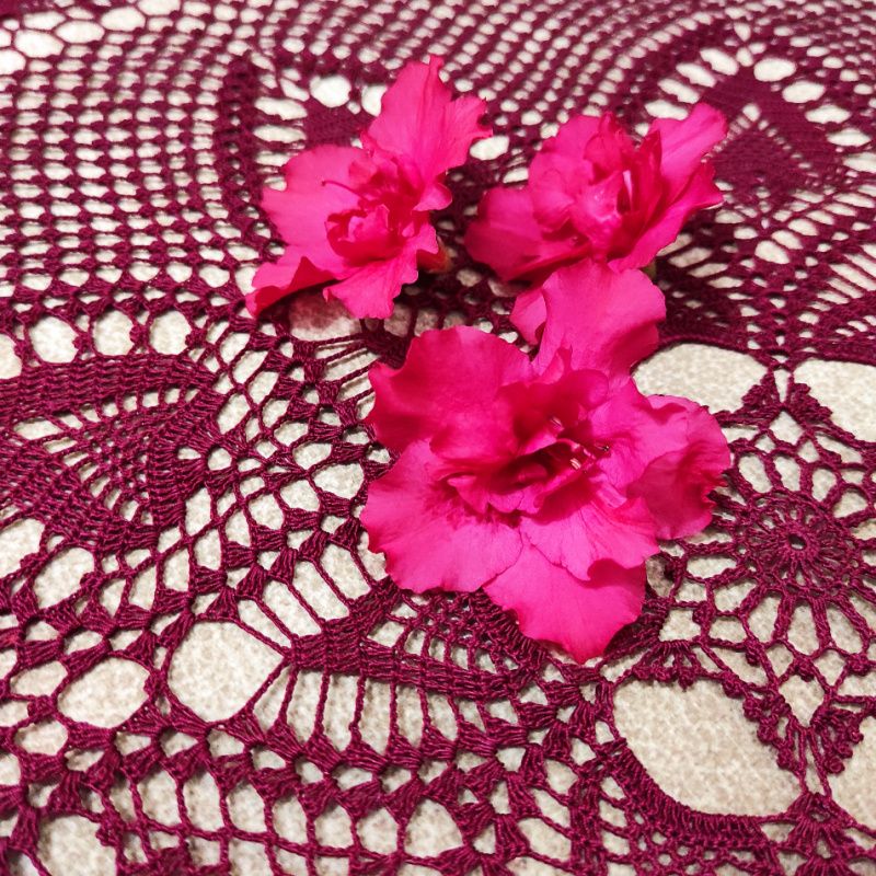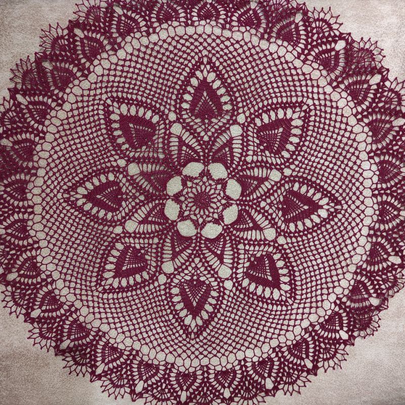 Очаровательная салфетка, насыщенного цвета красного вина. Благодаря размеру может быть использована в качестве скатерти на маленький кофейный столик
