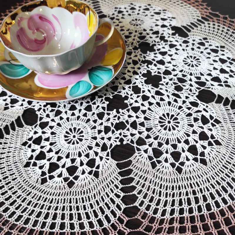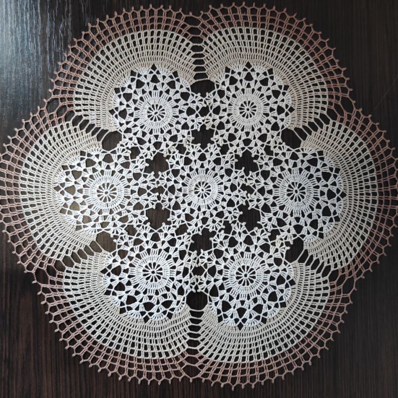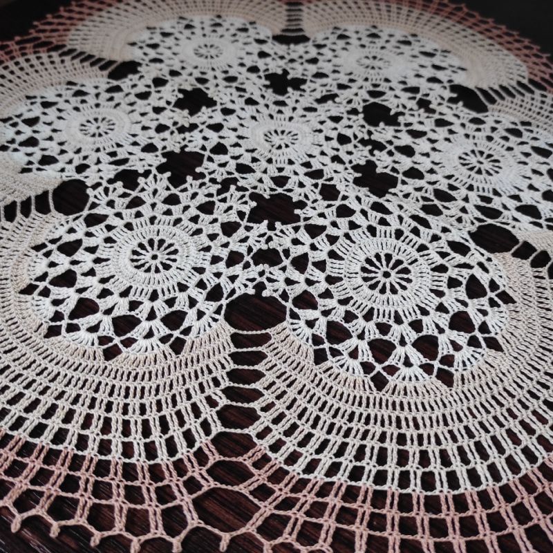 Кружевная салфетка выполнена с переходом цвета от светло-бежевого к кофейному.
