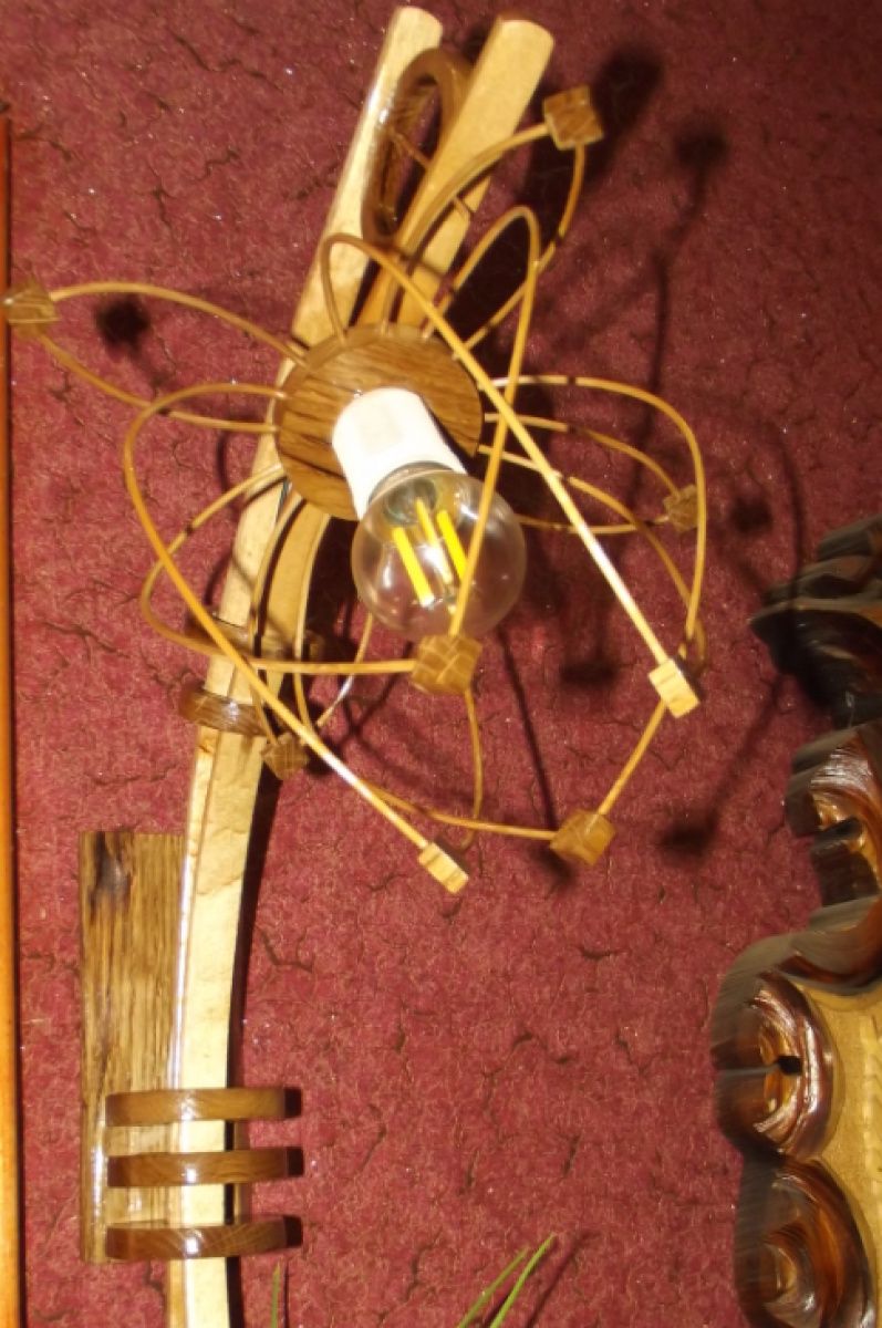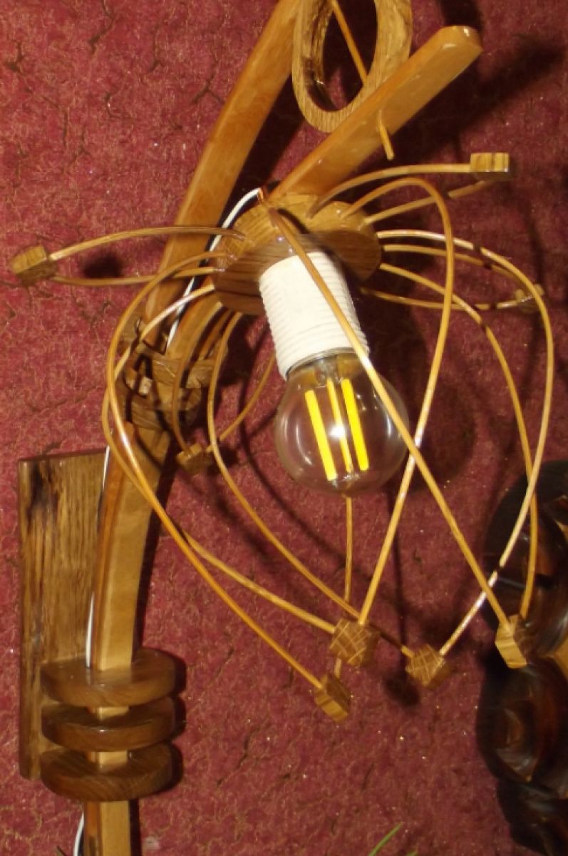 Настенный светильник ручной работы # AK-81002 с филаментных лампой. Материалы: Дуб, Бамбук, Бук. Покрытие: глянец, лак. Размер: Высота - 45 см, ширина - 23 см филаментных лампа 220 В, цоколь Е 27, мощность 6 Вт, Световой поток 880 Lm, цветовая температура света -3000К. Крепление: навесное под саморез Подключение: под скрытую проводку, возможна установка выключателя и штепсельной вилки (200 грн).