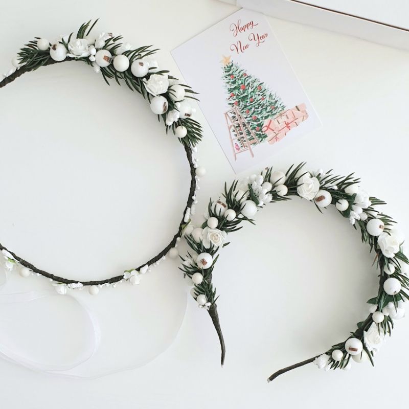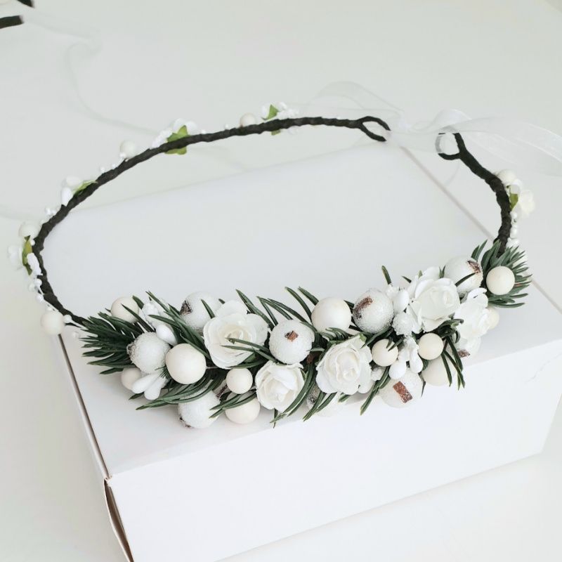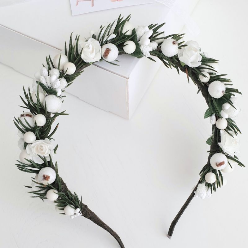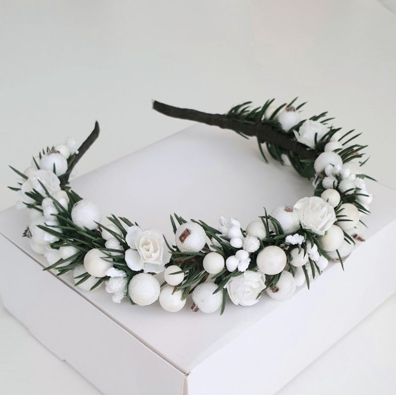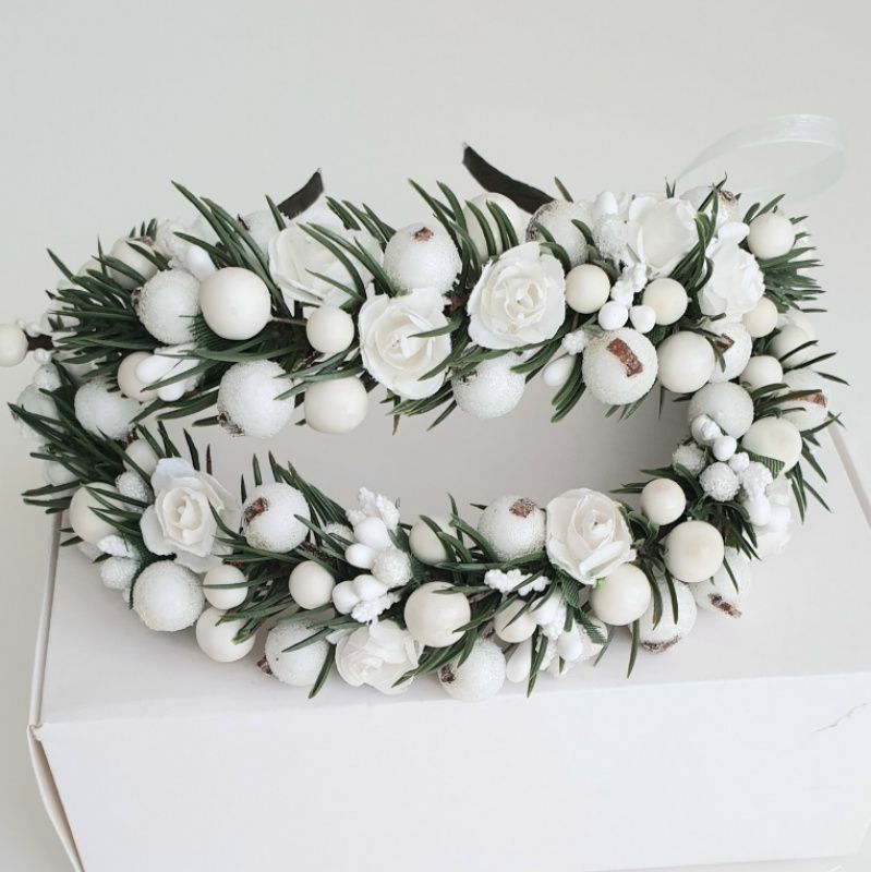 Новогодний белый обруч с елкой Венчик на одну сторону – 175 грн Обруч – 200грн