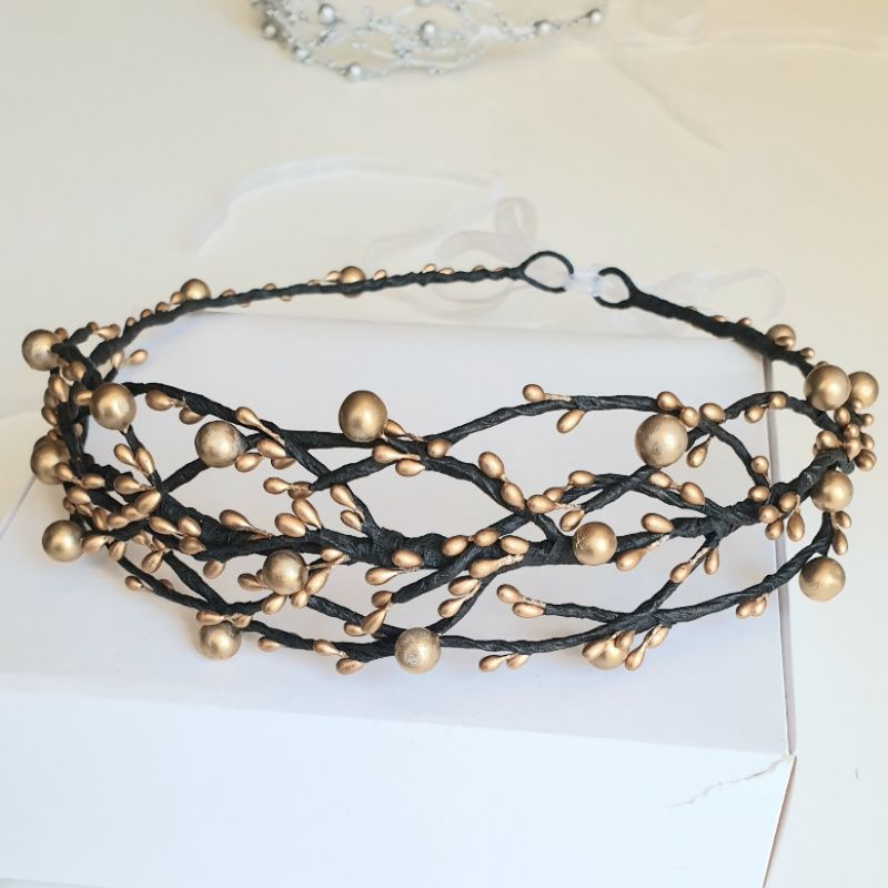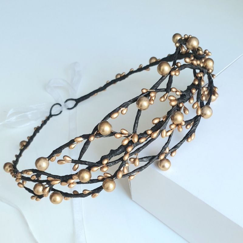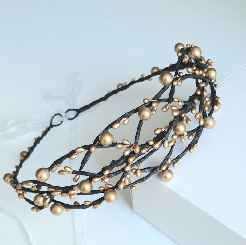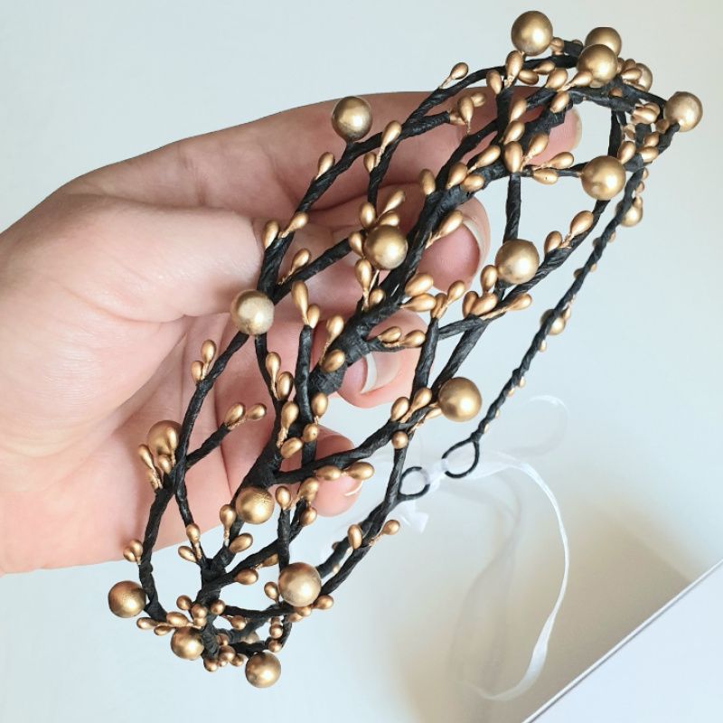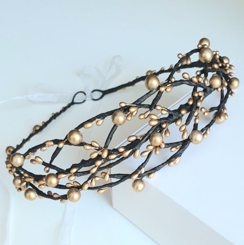 Золотой венчик "Веточки" Каждую веточку можно изогнуть, размер универсален. Регулируется лентой Возможно исполнение в другом цвете