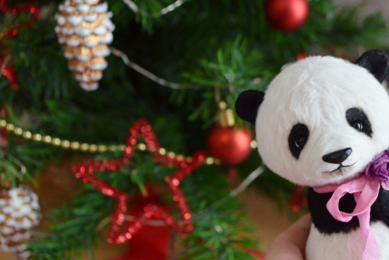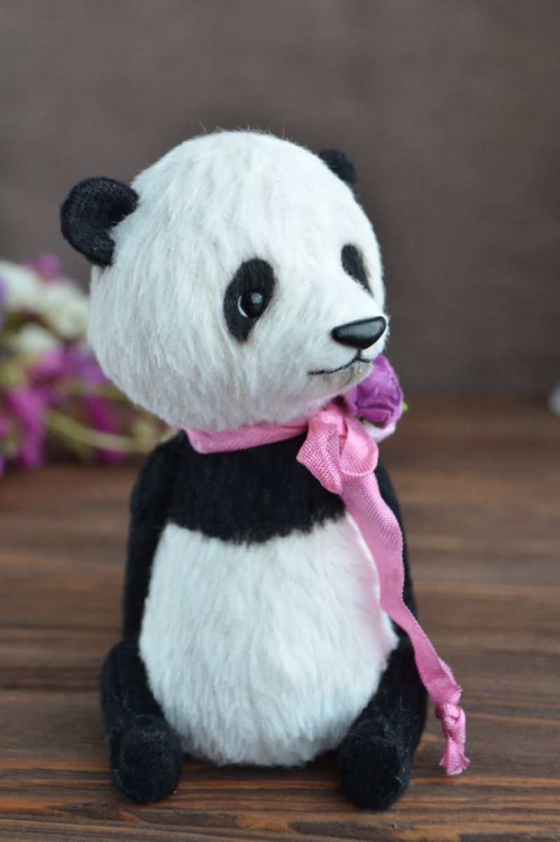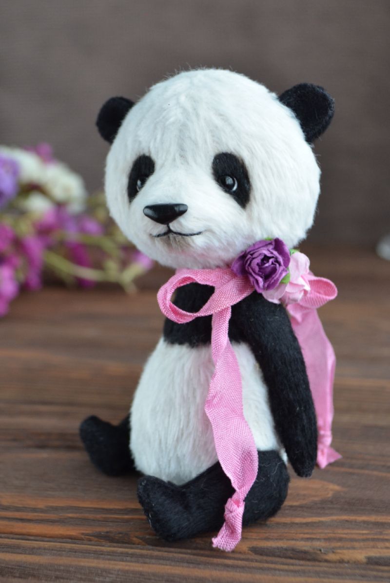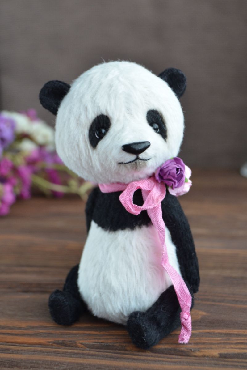 Маленькая панда Мейли сшита из немецкой вискозы, набита опилочками, всё крепления подвижны, злазки - стекло. Тонировка маслом. Работа выполнена в технике Тедди из профессионального материала.