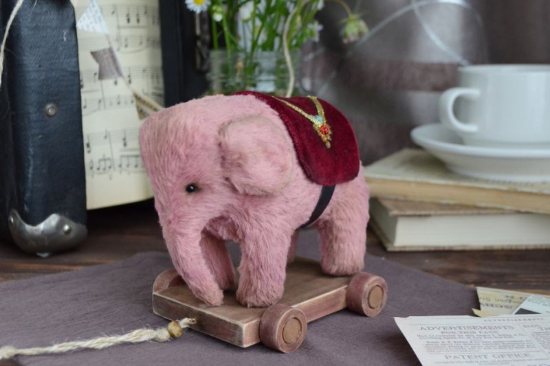 Цирковой слоник Джамбо сшит из итальянской вискозы в лучших традициях старинной игрушки. Наполнен древесными опилочками, тяжоленький. Деревянная подставка полностью функциональна. Размер слоника 11*14 см. Игрушка в технике Тедди считается коллекционной и уже более ста лет не выходит их моды. Это отличный ценный подарок на долгую память или пополнение вашей коллекции.