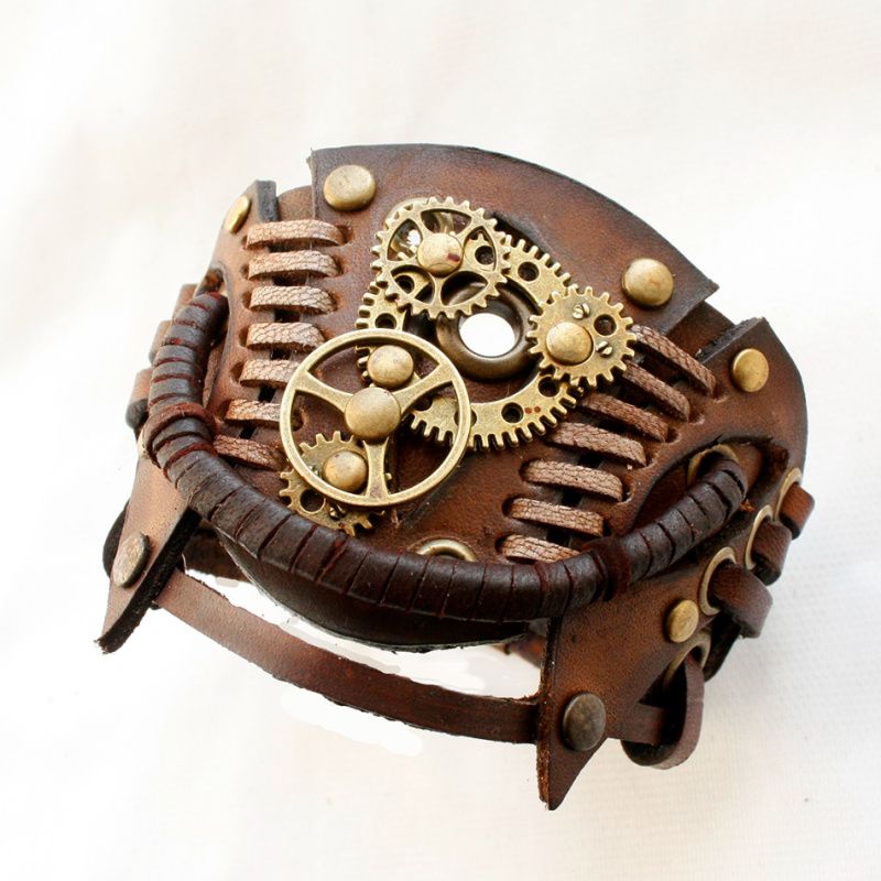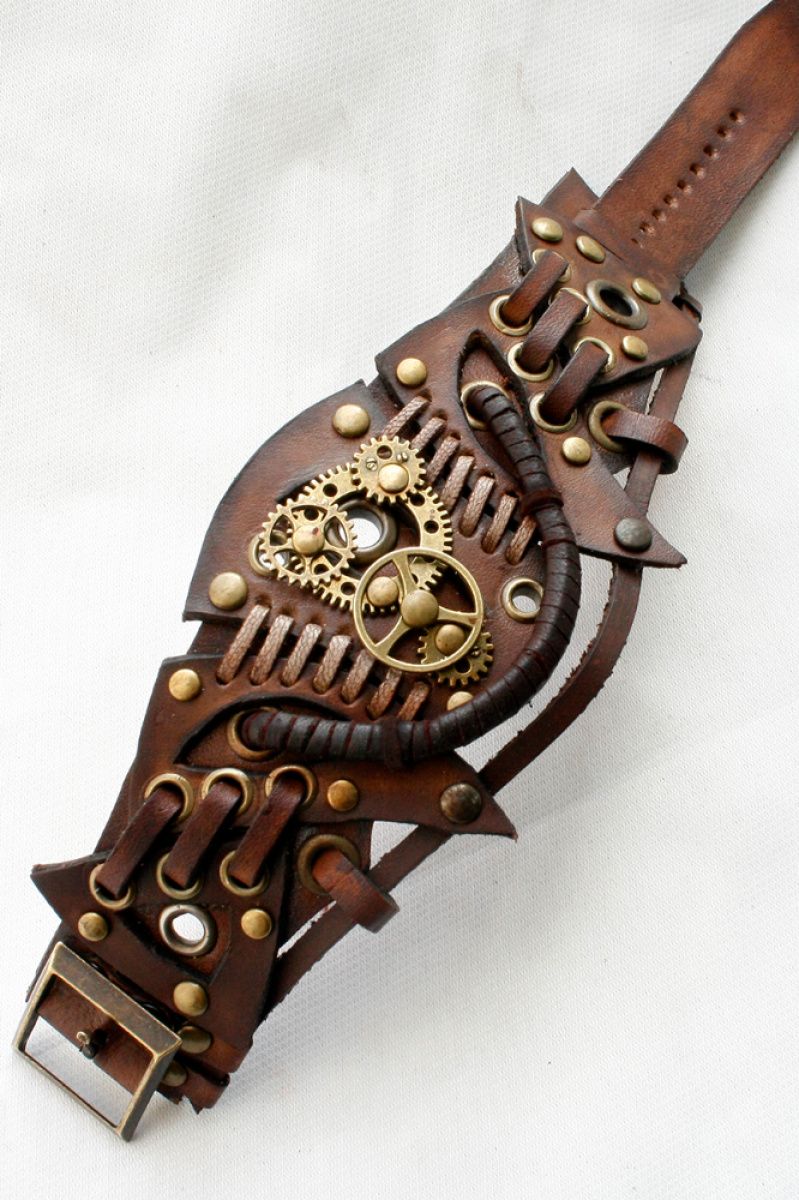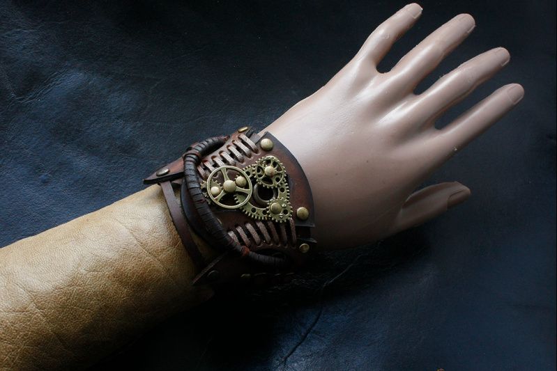 браслет изнатуральной кожи растительного т\дубления в стимпанк стиле обхват руки 17-20см