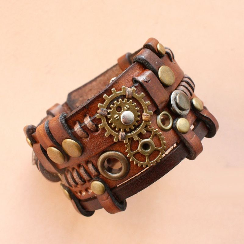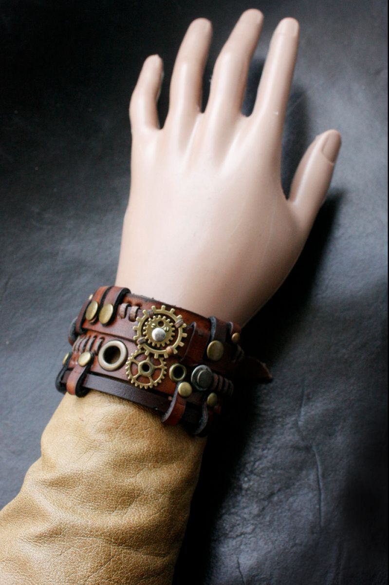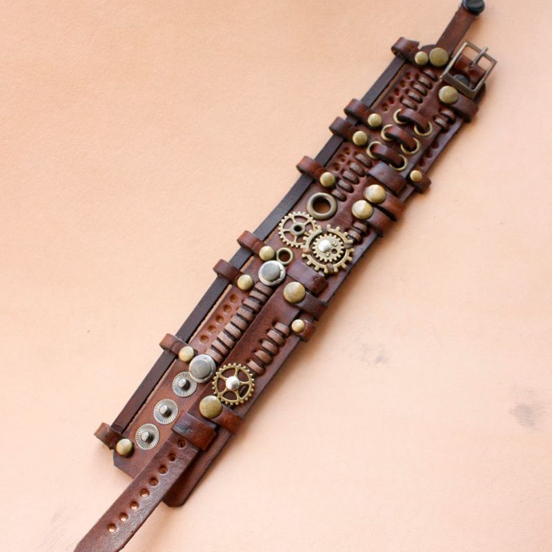 браслет из натуральной кожи растительного дубления в стиле стимпанк обхват руки 17-19см