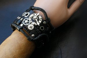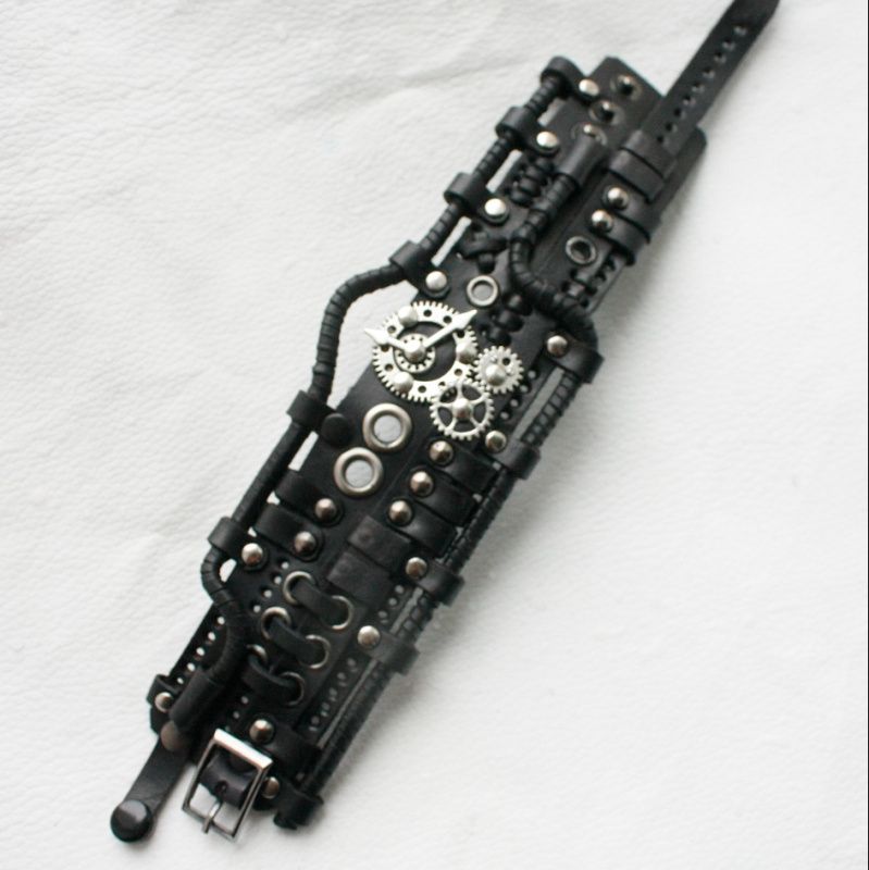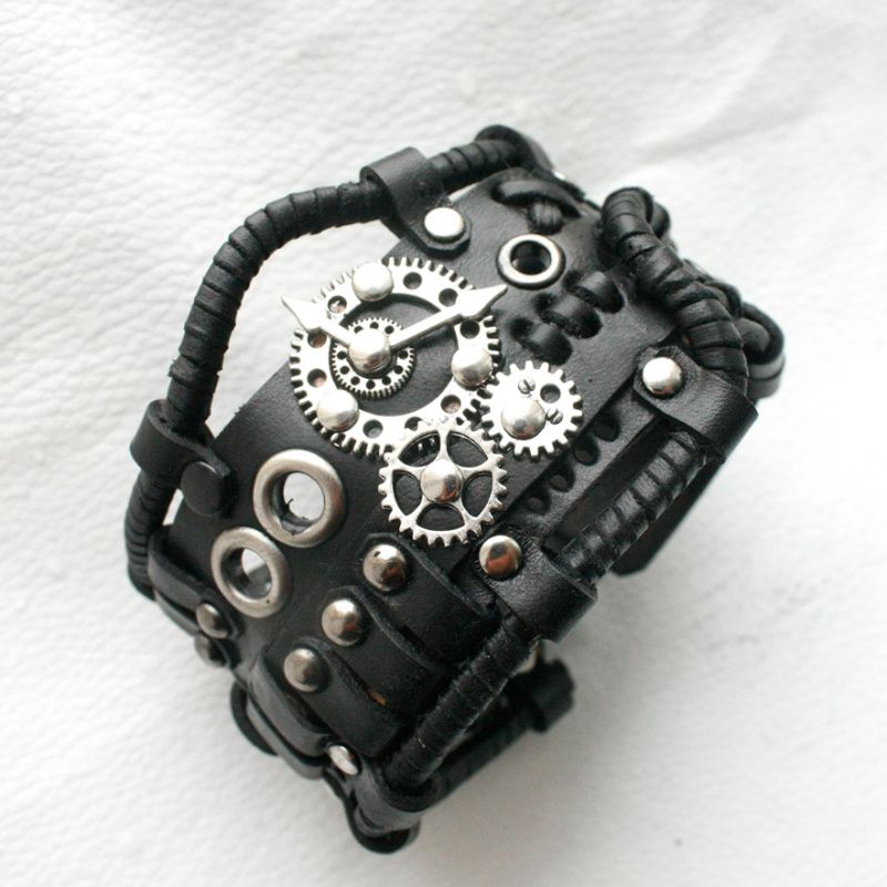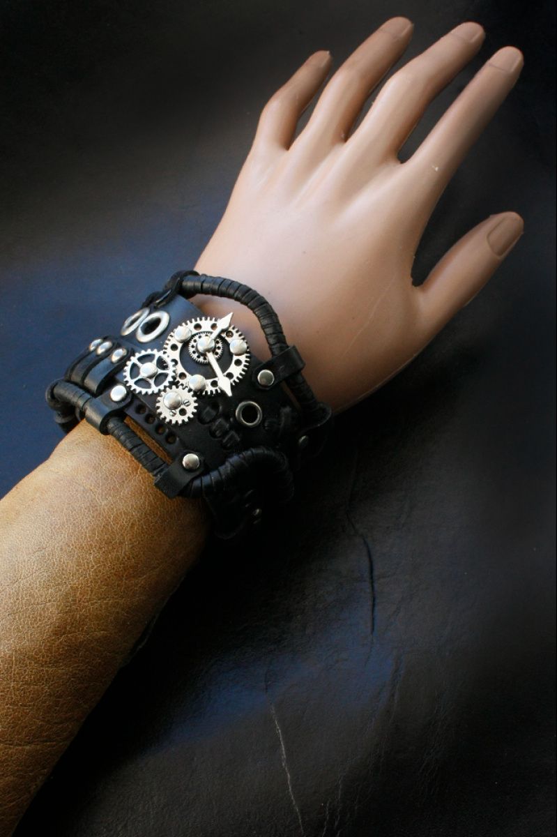 браслет из натуральной кожи растительного дубления в стиле стимпанк обхват руки 17-20см