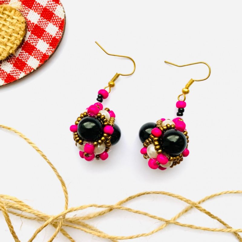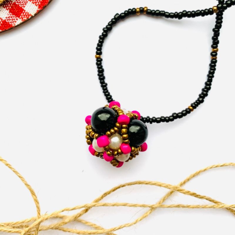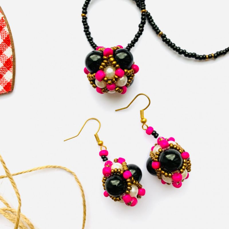 Вашему вниманию набор украшений (серьги и кулон на шнуре) из объёмных бусин, сплетенных из бисера разного калибра и бусин агата. Очень контрастный и яркий набор. Хорошо подойдет к однотонной блузке или гольфу. В комлекте с украшениями есть подарочная коробка.