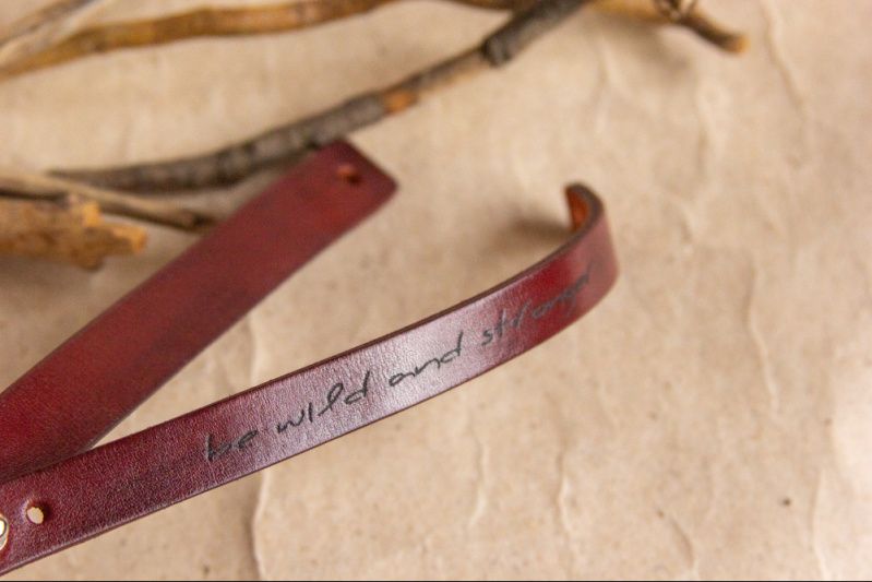 Любой диким и сильным Браслеты в стиле Бохо Размер регулируется Застежка на Кобурн кнопку Широкий 1,8 см шириной 230 грн _________ Узкий 1,4 см шириной с гравировкой 200 грн Можем сделать с вашим текстом или рисунком (стоимость рассчитывается отдельно)