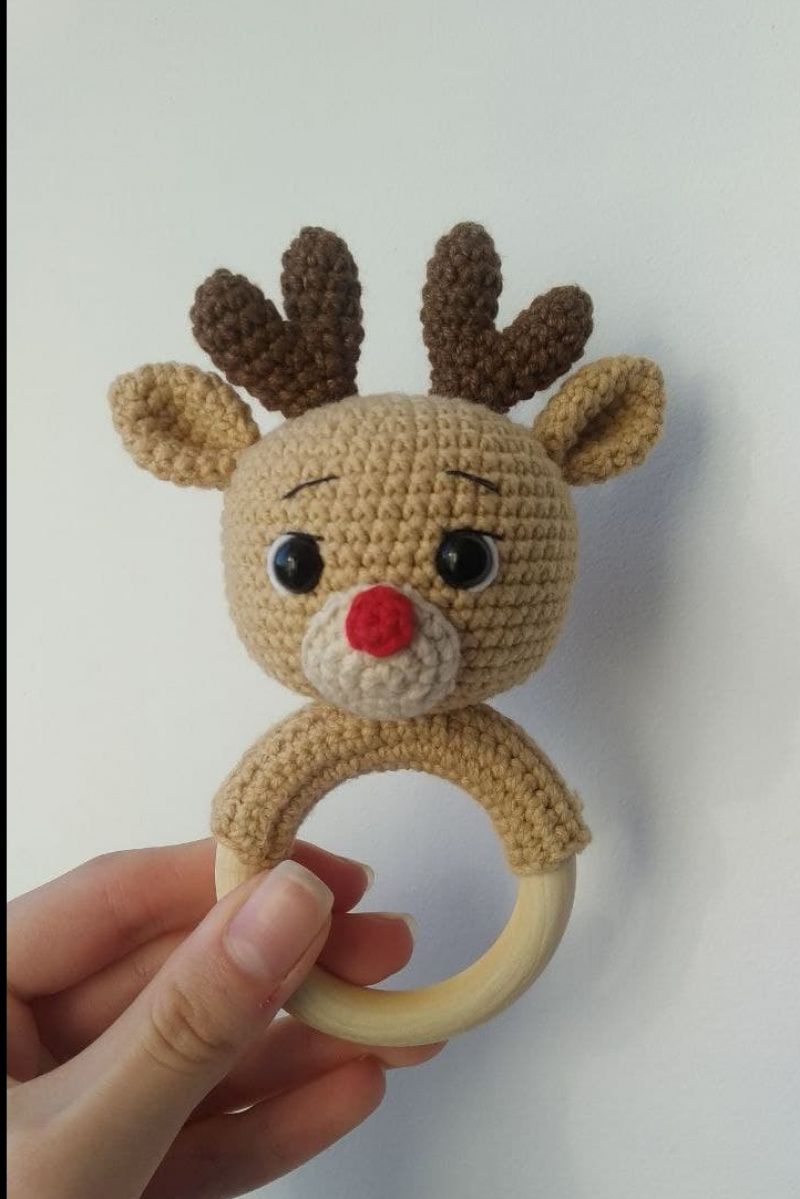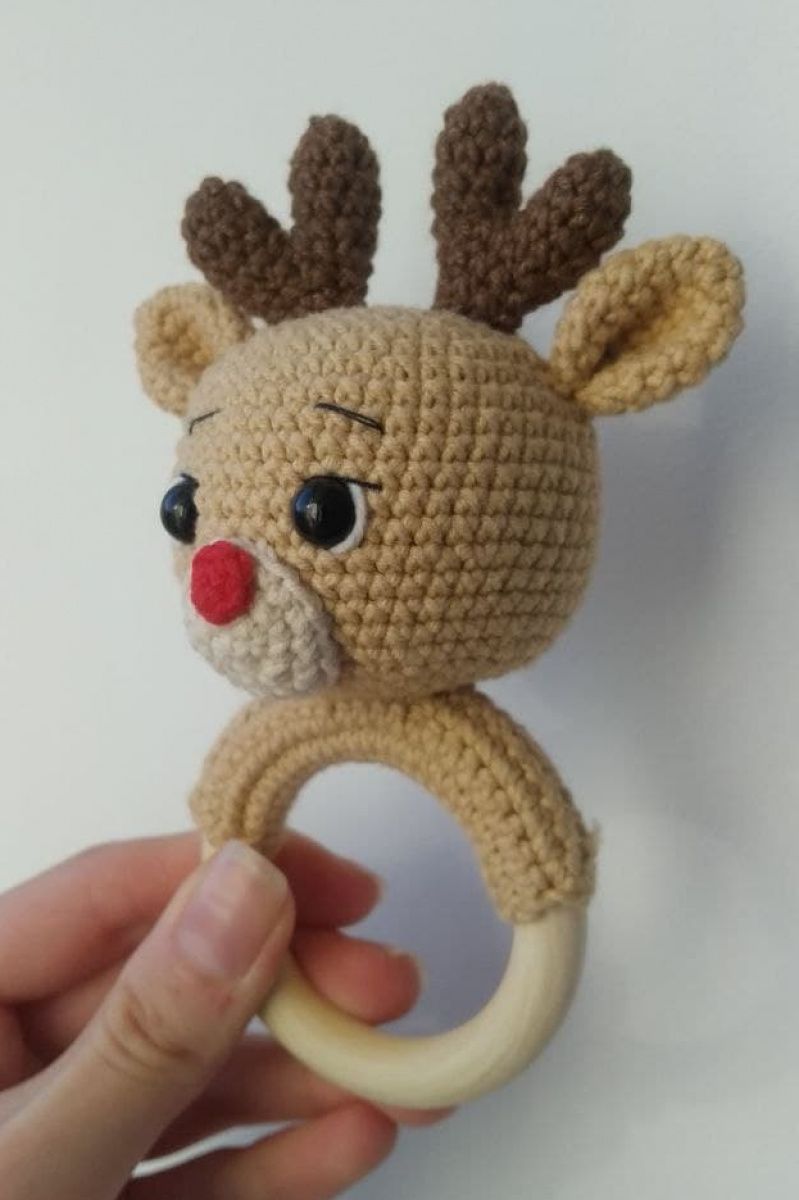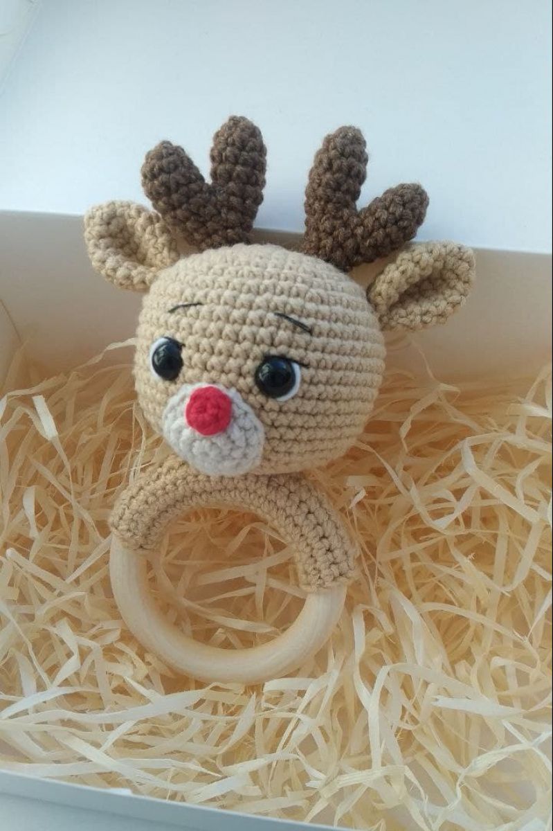 -Сделано из безопасных материалов для малышей -Наполнитель гипоаллергенный холлофайбер -Деревянное колечко 60мм -Глаза на безопасном креплении (хорошо закреплении изнутри, не оторвутся)