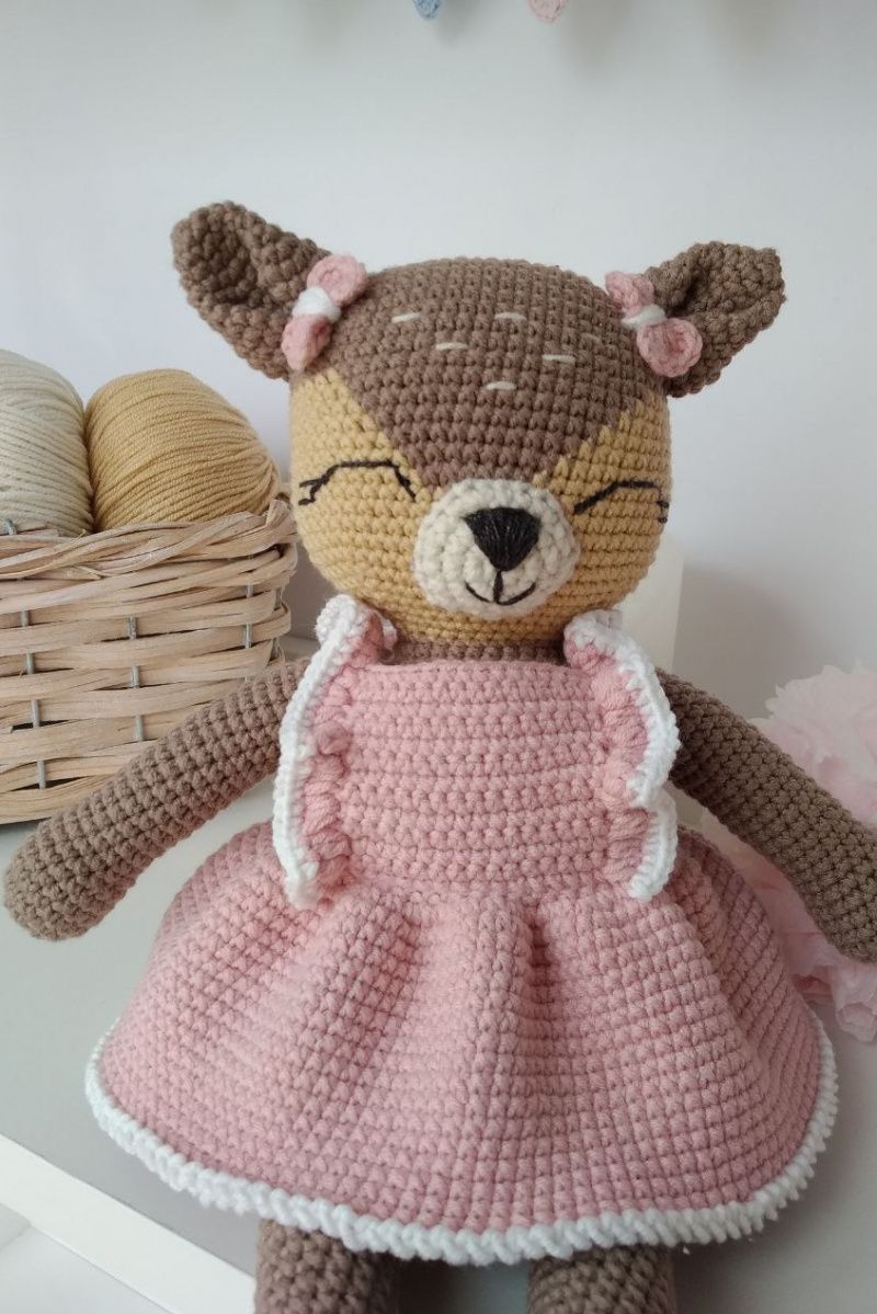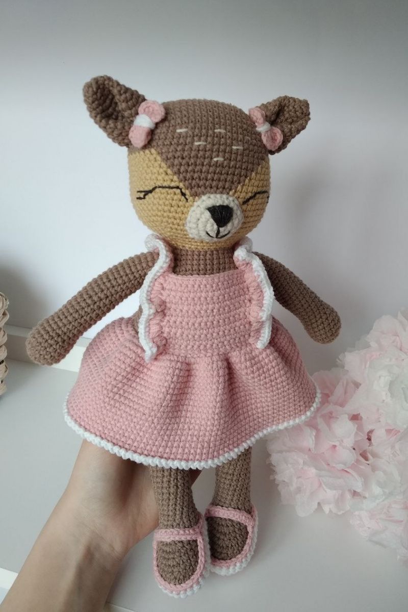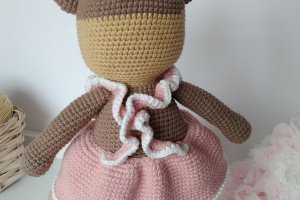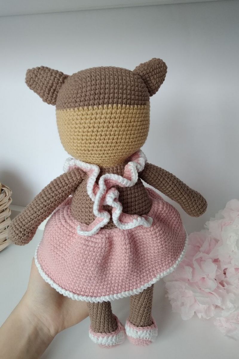-Состав нити: хлопок-55%, акрил-45%. -Наполнитель гипоаллергенный холлофайбер. -рост 28 см стоя -платье снимается Возможен повтор в других цветах