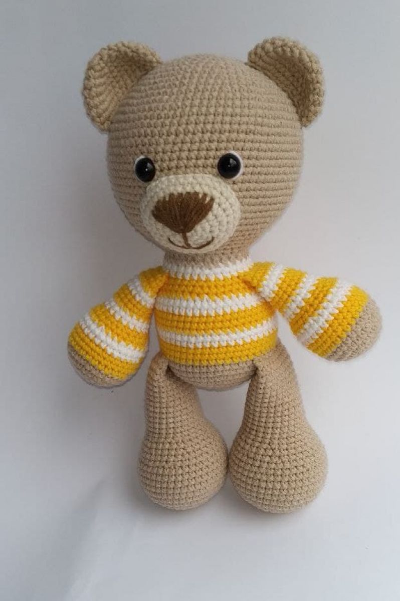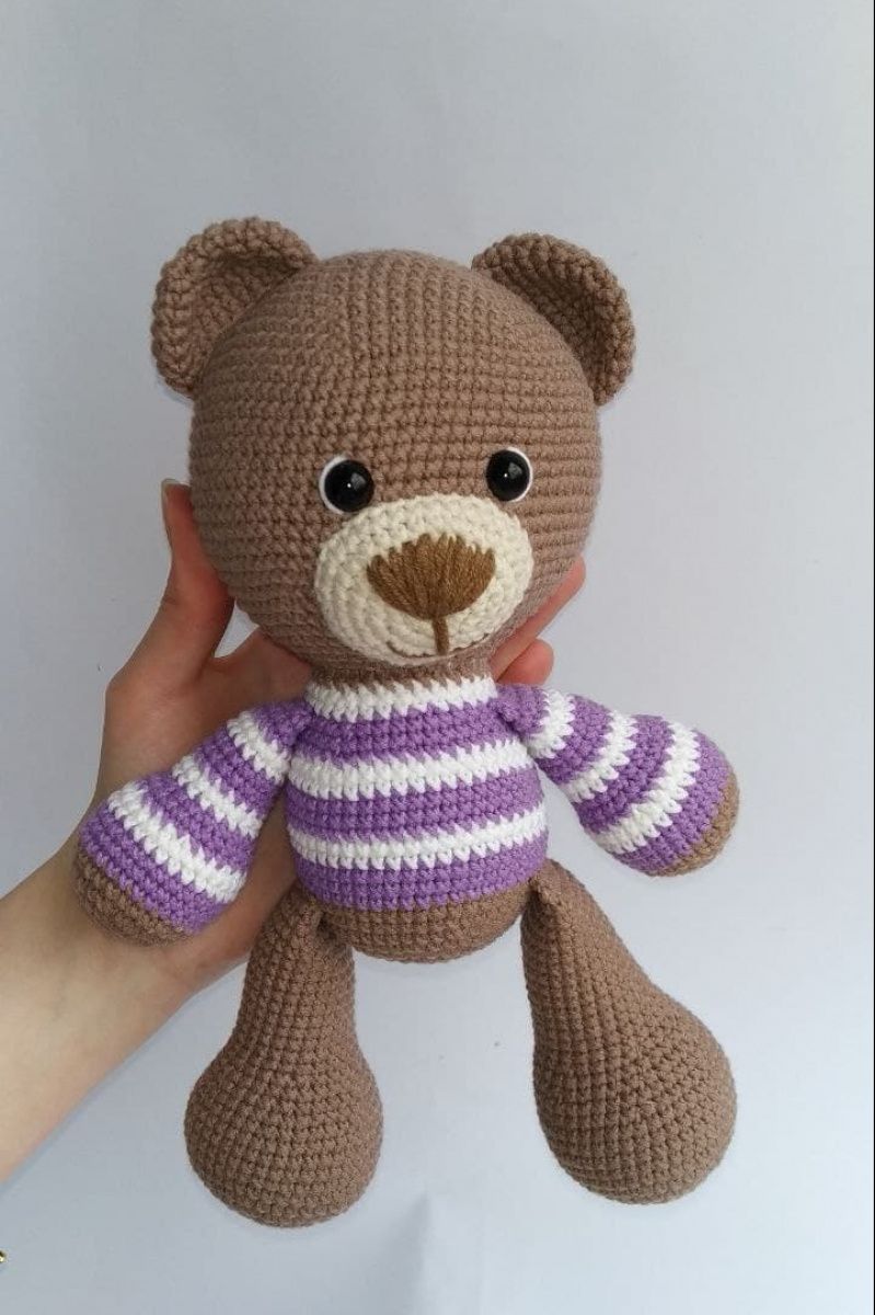-Цена за одну игрушку. -Цвета можно изменять. -глаза на безопасном креплении. -Состав нити: хлопок-55%, акрил-45%. -Наполнитель гипоаллергенный холлофайбер. -рост 24 см