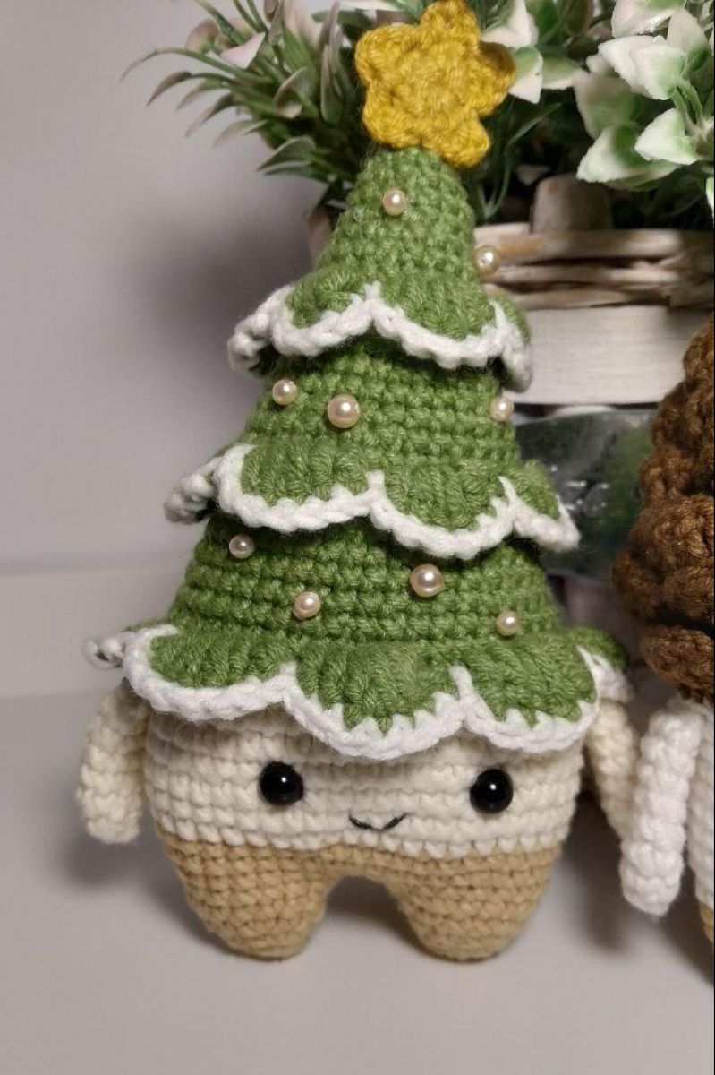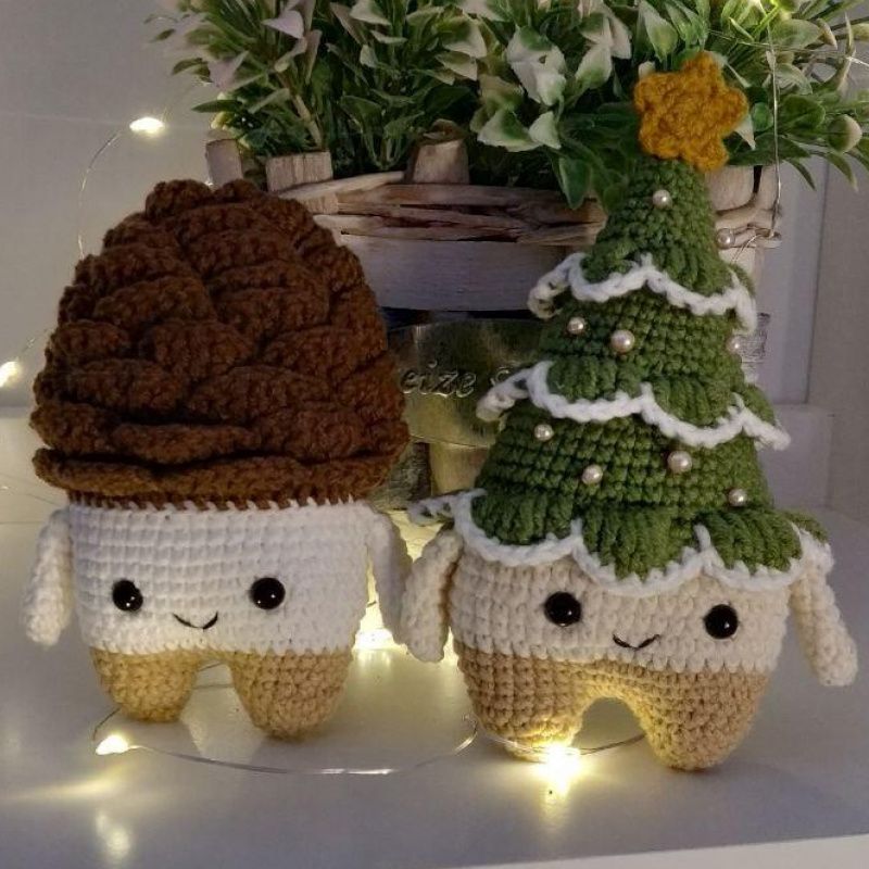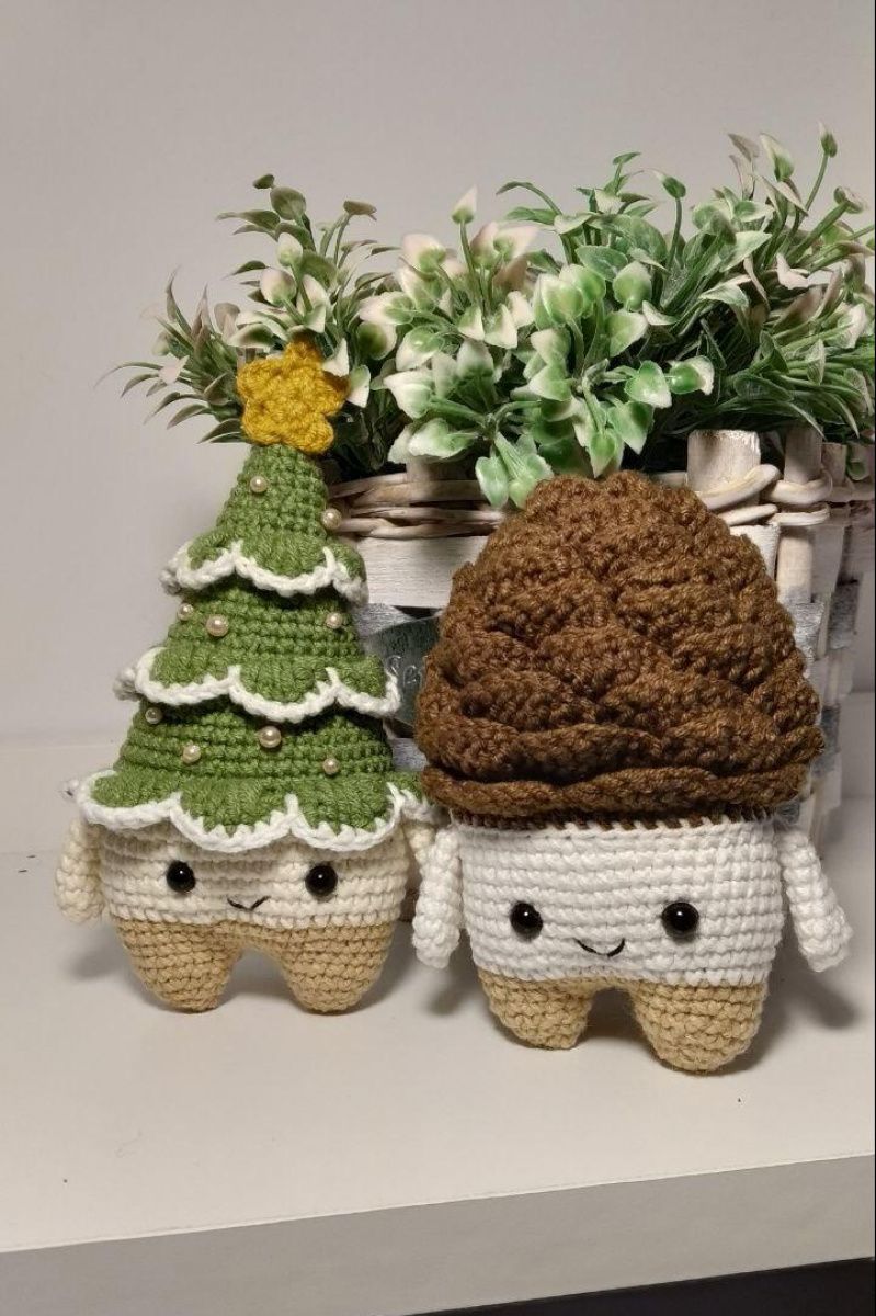 Цена за одну игрушку Изготовлено из пряжи: хлопок - 55%, акрил - 45%. Наполнение - холлофайбер. Размер: елка 14 см, шишка 11 см