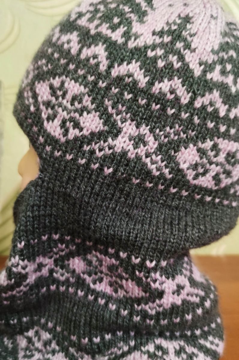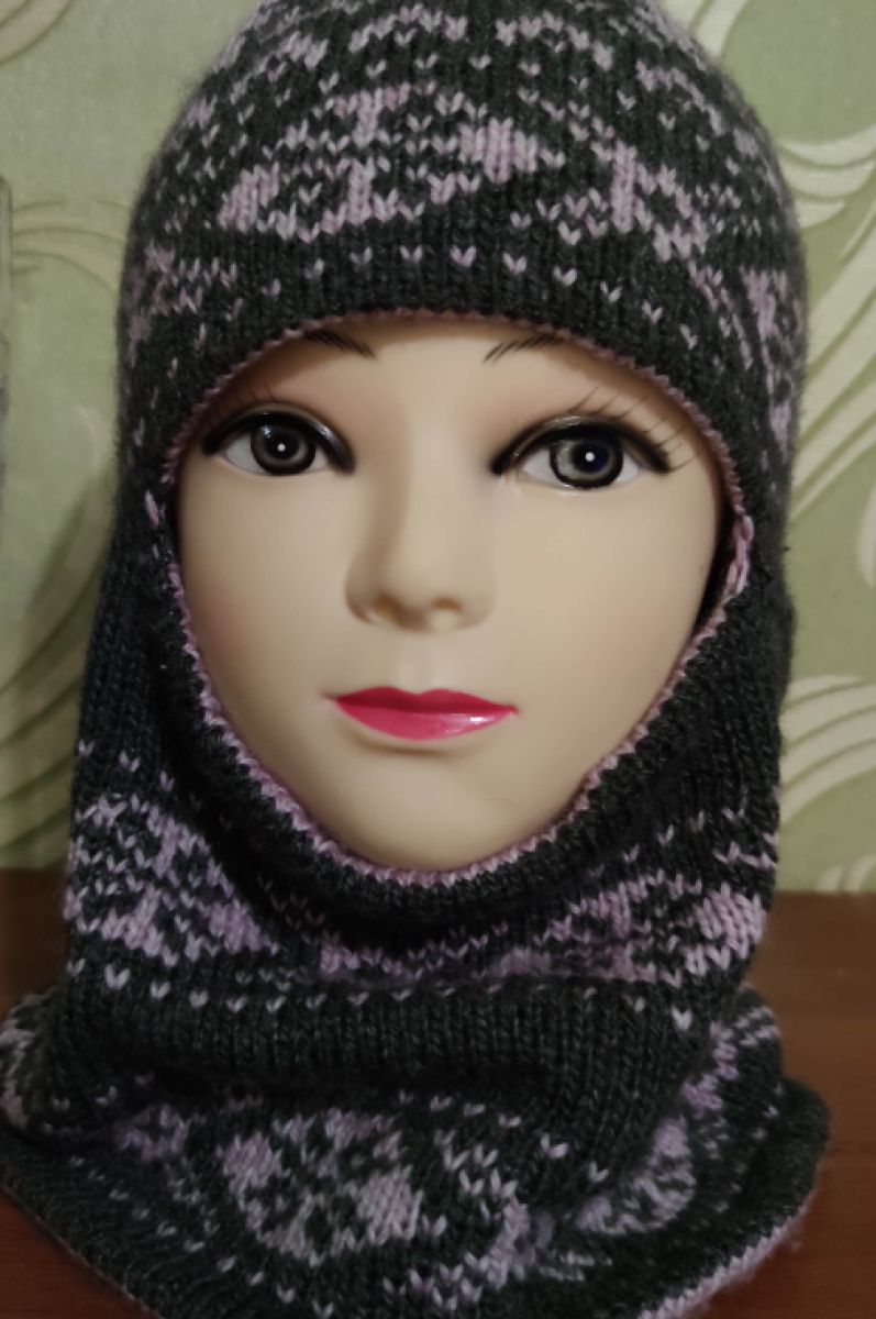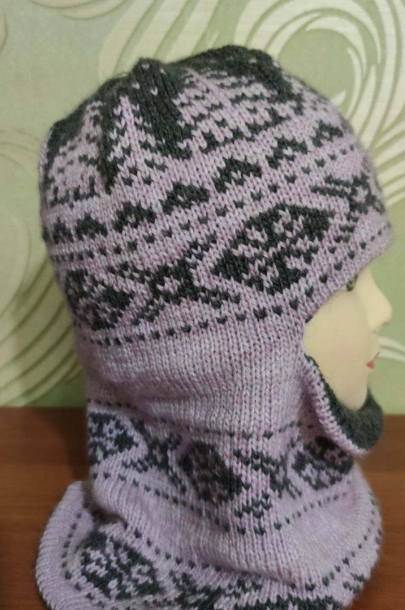 Шапка типа балаклава, но с открытым лицом.шапка связана двухсторонним жаккардом,поэтому имеет две полноценные стороны. Итальянская смесовая пряжа с альпакой, размер55-57