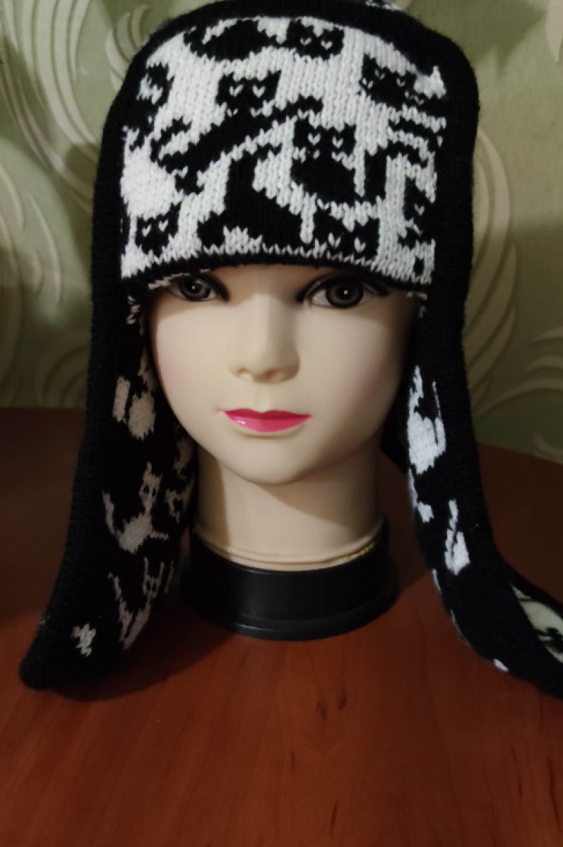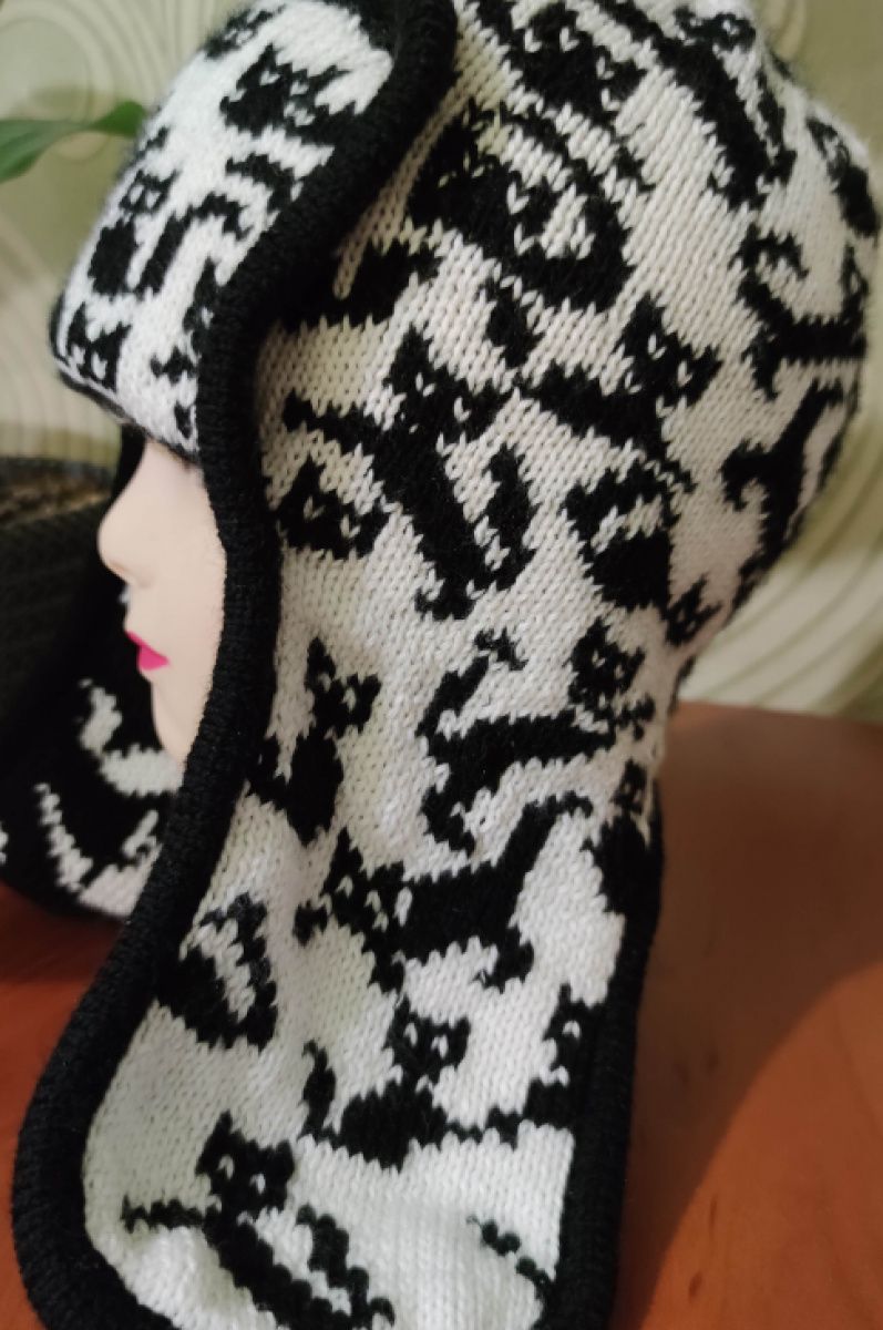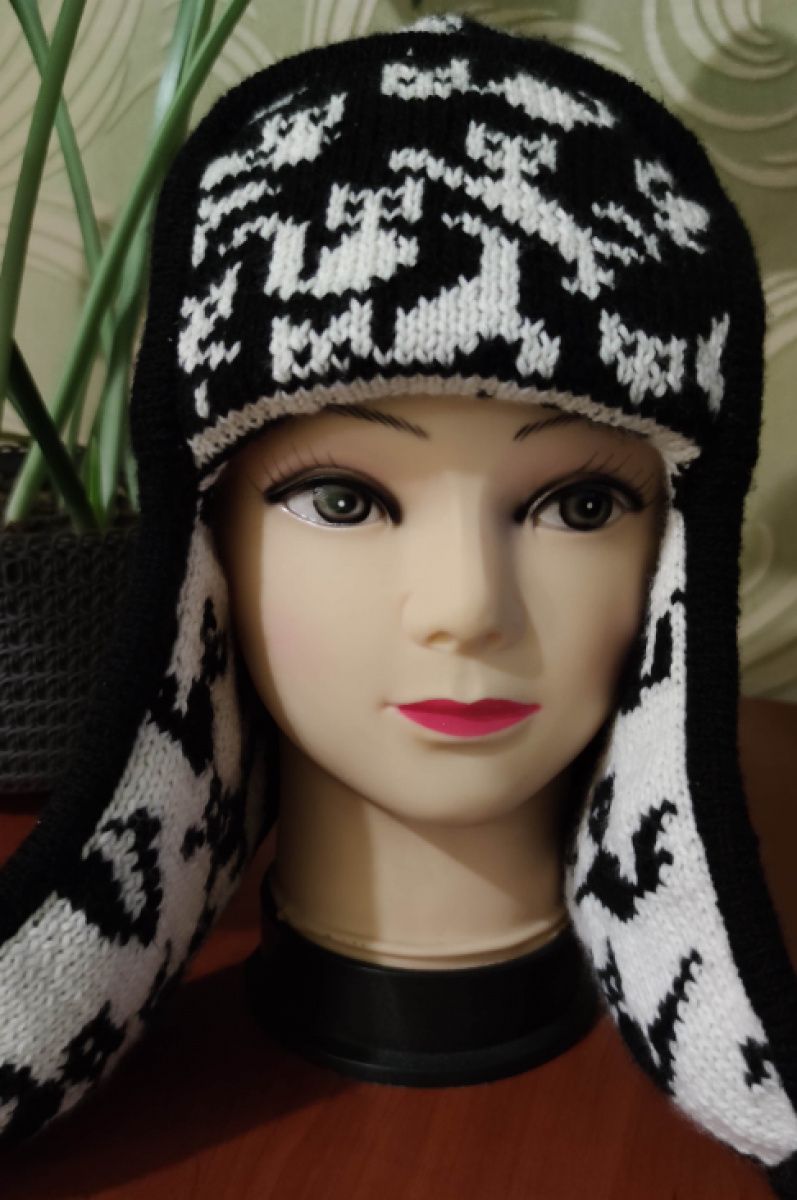 Шапка ушанка, двухсторонняя,связана в технике двухсторонний жаккард,меринос и альпака