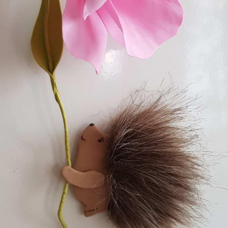 Магнит декоративный Еж - оригинальный сувенирчик - подарок) авторская ручная работа, из фоамирана. Еж - высота 6см. Высота всей композиции 19см. Цветок можно сгибать в любом направлении (прогулочная основа). Возможно изготовление в других цветовых сочетаниях.