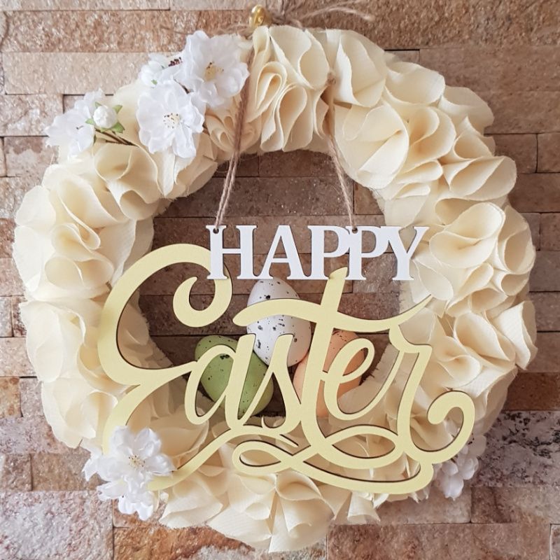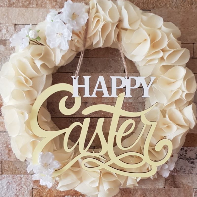 Венок декоративный, - ручная работа, из текстиля, нежно-лимонного цвета. Диамерт 29см