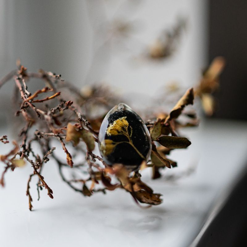 подвеска с цветами на черном фоне изготовлена из ювелирной смолы