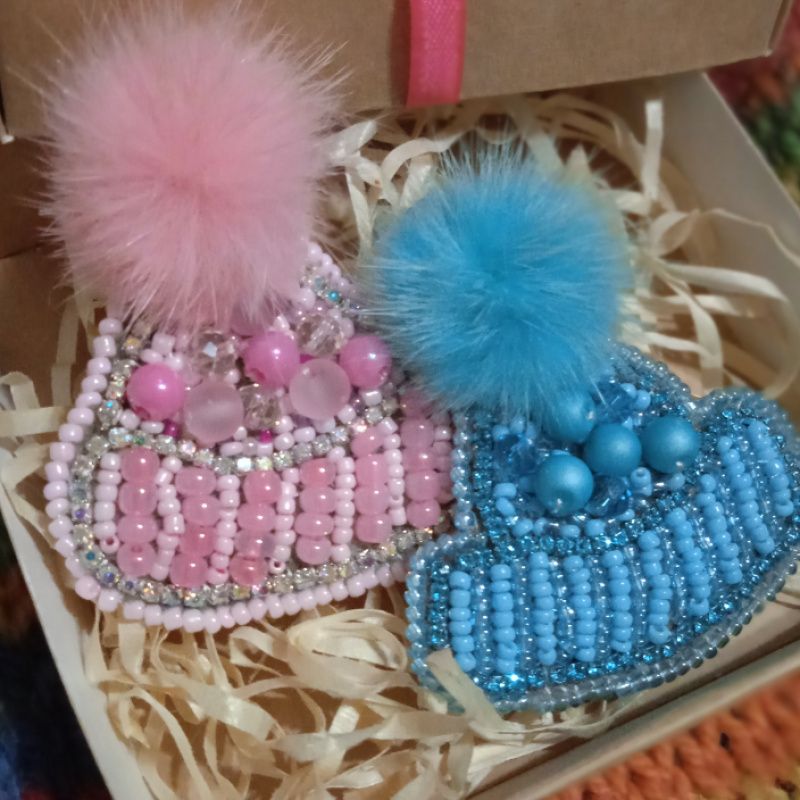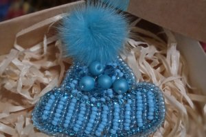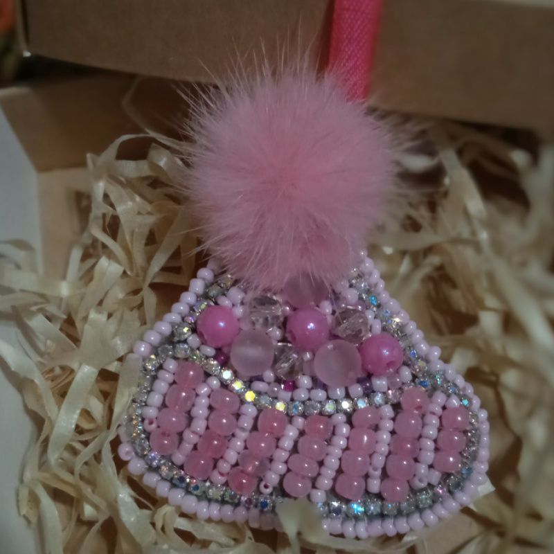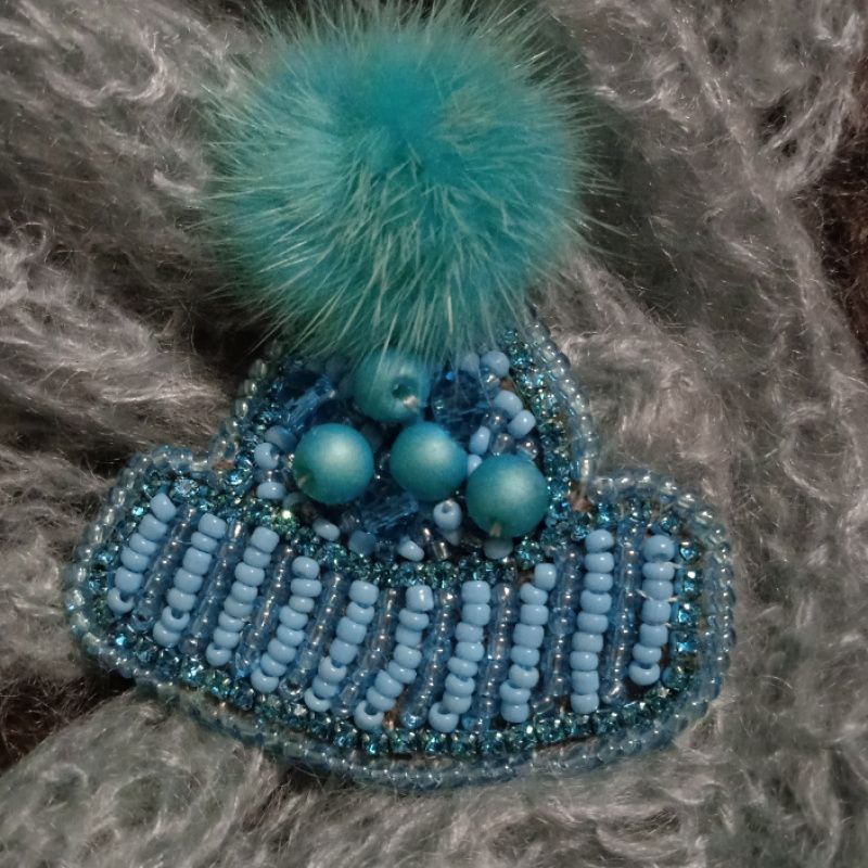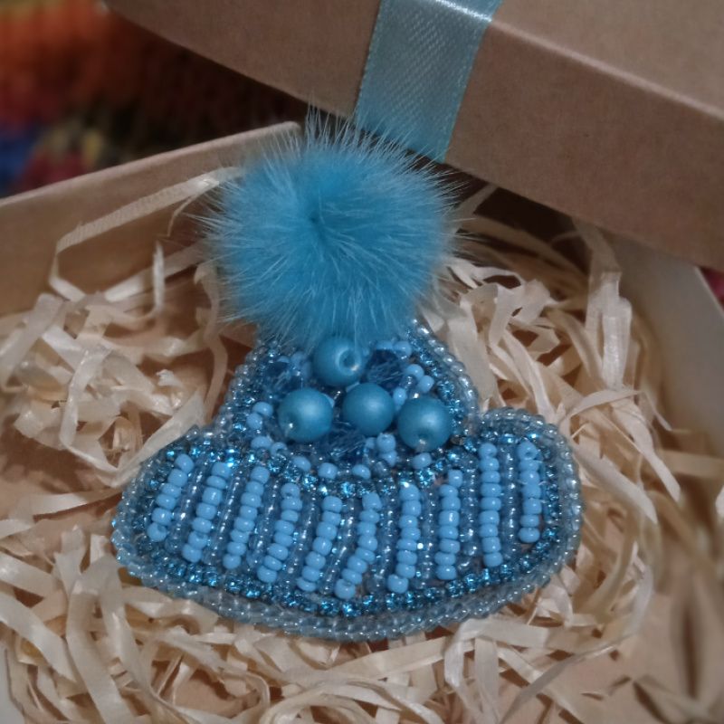 Прекрасная,милая брошечка в форме шапочки, отличный подарочек на новогодние праздники. Глядя на нее сразу станет теплее в морозные дни и вечера. Такое украшение можно носить и на одежде, и на шарфах, и на рюкзаках и сумках.