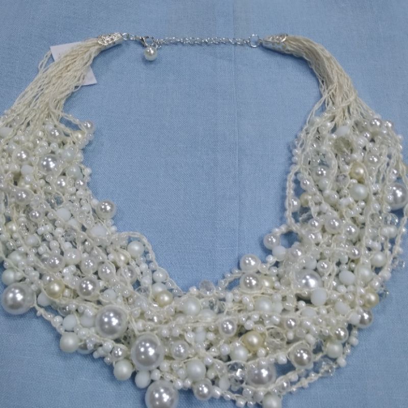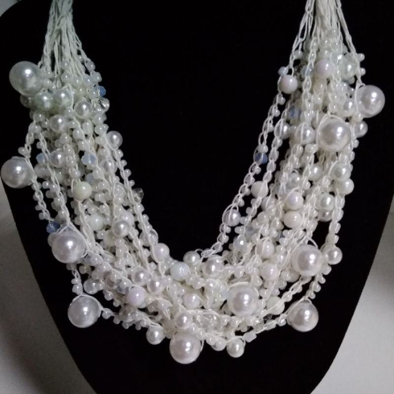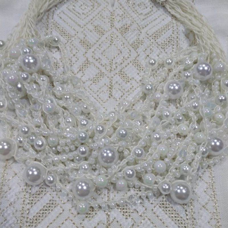 Жемчужные бусы ручной работы.Прекрасные нежные бусы, изготовлены из стекляных бусин под жемчуг, чешского хрусталя и бисера.