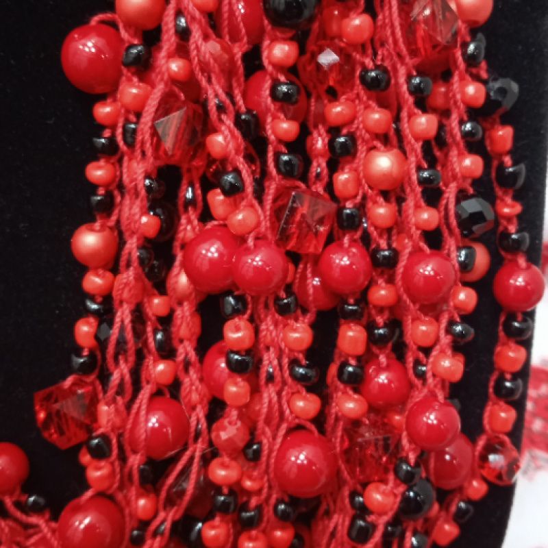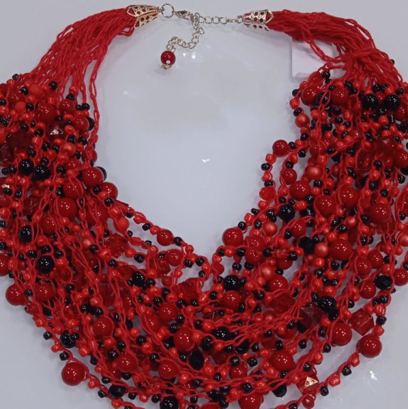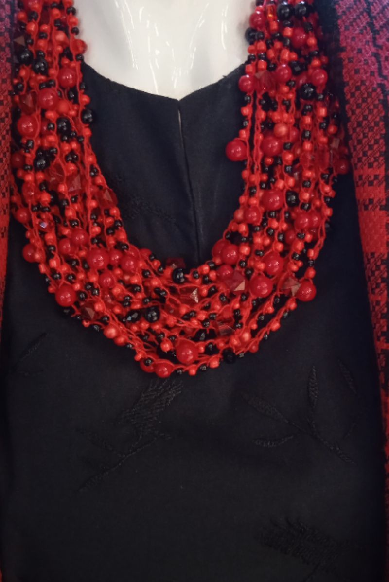 Кораллы украинские красные изготовлены из красных и черных акриловых бусин, чешского хрусталя и бисера. Все нанизанные на прочную нить, фурнитура из нержавеющей стали под серебро. Такое ожерелье станет хорошим дополнением к украинской одежды. Выглядит очень аутентично и колоритно. В нем вы почувствуете себя настоящей украинской красавицей.