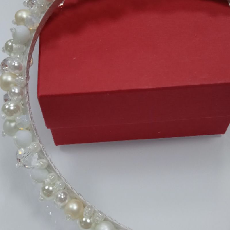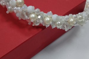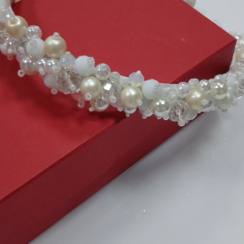 Обруч с нежным жемчугом и хрусталем. Прекрасно подойдёт для образа невесты.все бусины и чешский хрусталь надёжно пришиты к основе ободка.