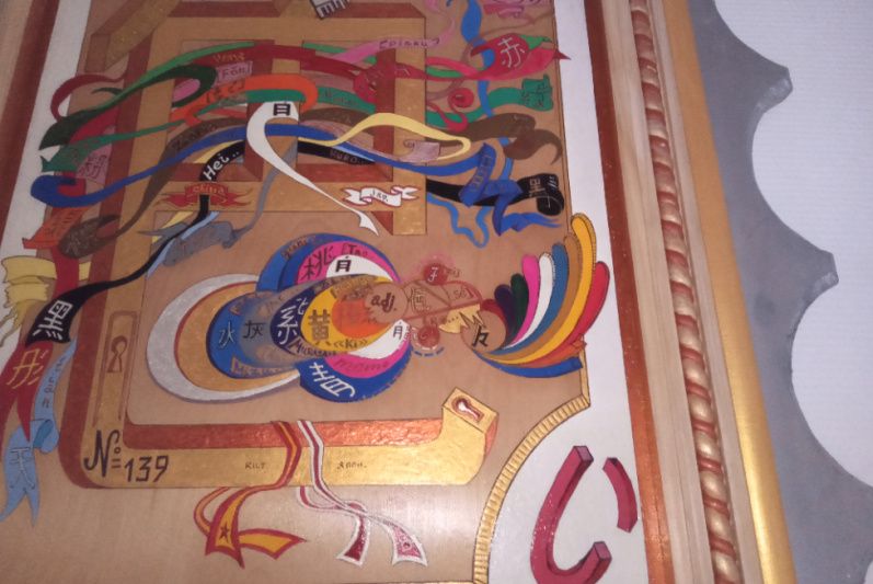 Картина відображає лінгвістичний стан ,а саме як утворюється назва кольорів у японській та китайських мовах ...