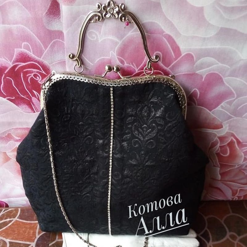 Вечерняя сумочка из ткани на застежке фермуар с ручкою.Ланцюжок для продления ручки.Мае дно с нижками.Пидклад с карманом.