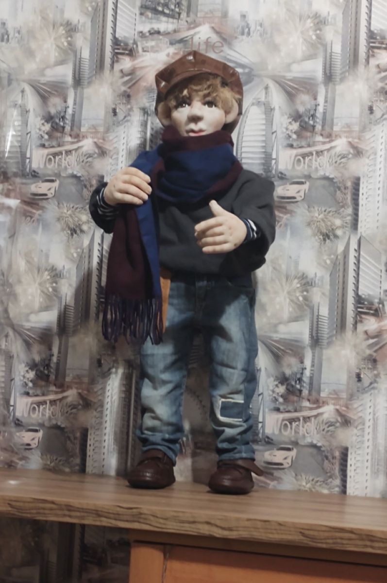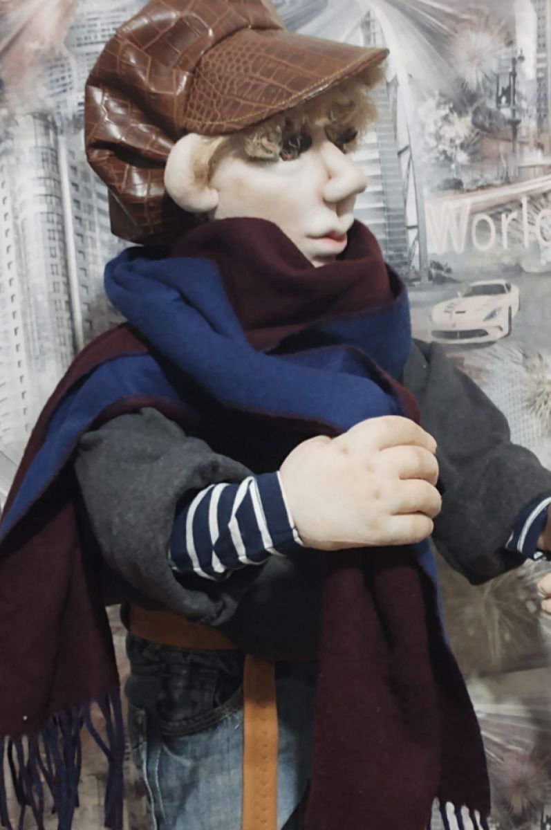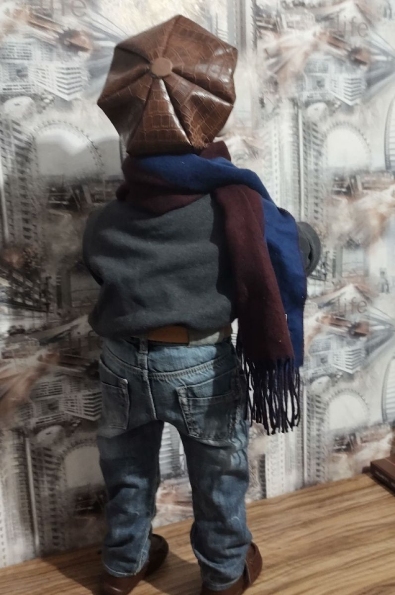 Кукла может сидеть, стоять самостоятельно. В руки возможно вложить любую деталь, кажущуюся вам необходимой для выбранного вами персонажа. Кем только его не называли- и Остап Бендер, и ГаврОш, и таксист, и художник. Вам выбирать с кем вы будете дружить.