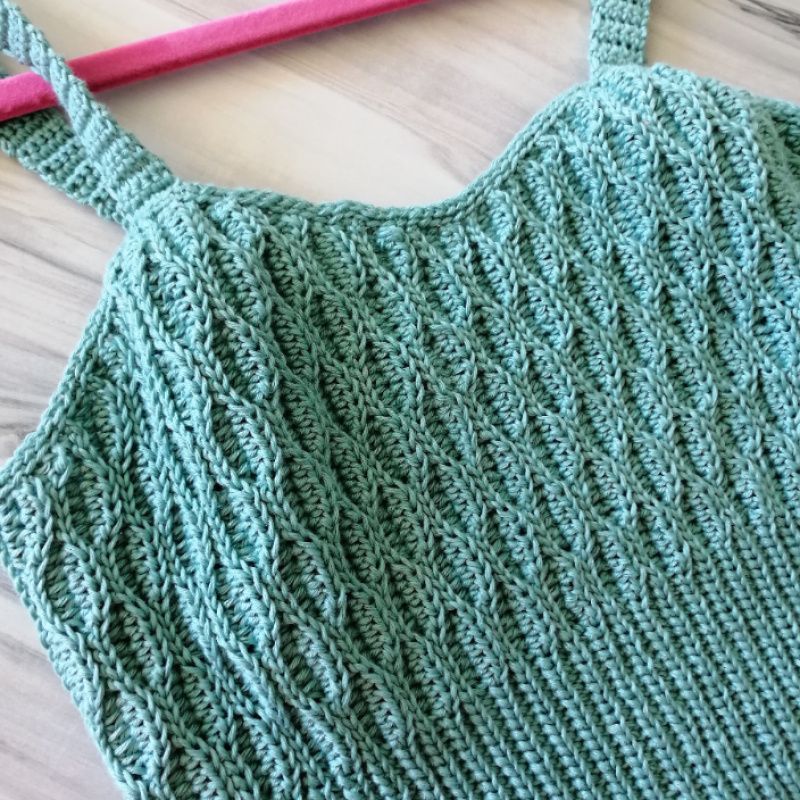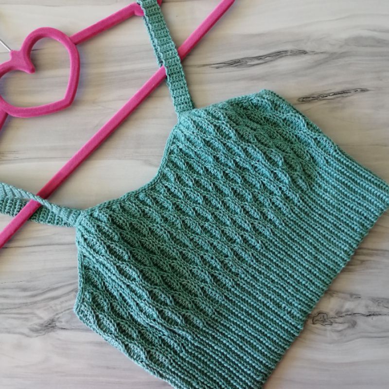 Топ изготовлен из 100% хлопок. Размер по вашим меркам, или стандартные мерки. Идеальнее, если вяжу по вашим параметрам. Топ спортивного плана, узор хорошо держит форму, хорошо тянется но не дает ему растягиваться. Впереди узор волнами, на спинке узор резинки. Снизу топ вязаный эластичной резинкой, поэтому топ хорошо прилегает к телу и не сдавливает. Цвет подберем на ваш индивидуальный вкус