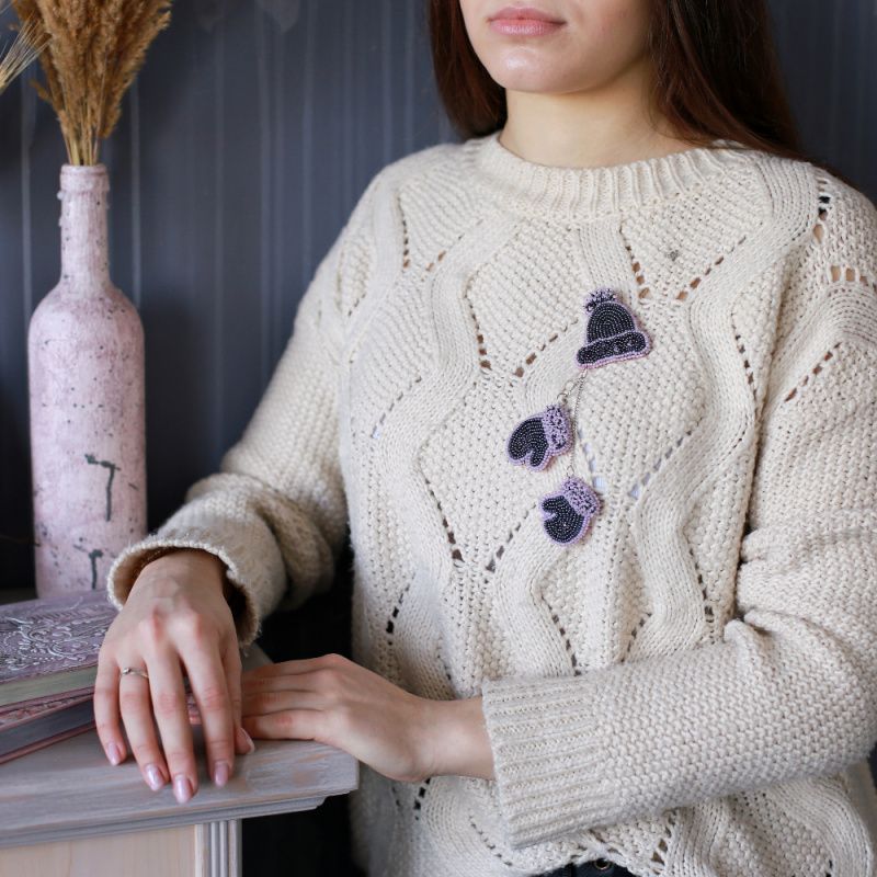 Крутой зимний аксессуар Брошь "Зимние аксессуары" изготовлена из чешского бисера и пайеток. На обороте - теплый фетр. Общая длина - 15 см, шапочка - 5,3 * 4,6 см, перчатка 4,2 * 3,3 см. Длина цепочок - 2,7 и 6,7см Возможно исполнение в других цветах. Рекомендации по использованию и хранению: - берегите от маленьких детей; - не допускайте контакта с водой; - вскрывать но не растягивайте изделие. По Вашему желанию можно: - выполнить данную модель в других цветах; - изменить длину готового изделия. Доставляется в подарочной упаковке. Четкость и цветопередача зависит от распределительной качества Вашего экрана монитора, поэтому изображение может несколько отличаться от оригинала.