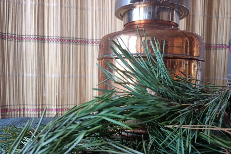 Для гидролата сосны иголки собираются в конце осени, до морозов. Именно в этот период в иголках сосредотачивается максимальное количество ценных веществ. Хвоя, ветви и ствол пропитаны смолистым веществом и вся эта польза переходит в гидролат! Сосновые иголки в больших количествах содержат каротин , витамин С, эфирные масла, фитонциды, дубильные элементы, смолистые вещества, крахмал, соли, макро и микроэлементы. Отдельное внимание заслуживают полезные кислоты в составе. Среди них стеариновая, оксипальмитиновая, бензойная, олеиновая, абиетиновая.