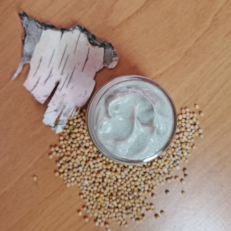 Маска на основе натуральных растительных масел и других компонентов натурального происхождения. Содержит экстракт березовой коры и зеленый косметическую глину. Имеет отличные антисептические и вяжущие свойства, снимает раздражение, при регулярном использовании эта маска делает кожу мягкой и чистой. Рекомендуется для всех типов кожи, особенно для комбинированной, жирной, пористой, проблемной. Перед первым использованием обязательно сделайте аллергическую пробу на сгибе локтя (!) В составе маски есть натуральные масла горчицы и льна, которые прекрасно питают и увлажняют кожу. А также уменьшают различного вида воспаления, делают кожу упругой и эластичной, имеют заживляющее действие. Экстракт березовой коры идеально подходит для ухода за чувствительной и проблемной кожей. Обладает вяжущим и бактерицидным действие, снимает раздражение и выравнивает тон кожи, увлажняет, улучшает кислотно-щелочной баланс кожи, улучшает кровообращение и лимфоток, способствует омоложению и матированию кожи. Эта маска содержит зеленую глину, которая, благодаря содержанию большого количества микроэлементов, помогает восстанавливать гидробаланс кожи. Зеленая глина смягчает и очищает кожу лица. Применяется для разглаживания и подтягивания кожи. Прекрасно очищает поры, устраняет жирный блеск. Обогащенная эфирными маслами эстрагона и лемонграсса, которые усиливают благотворное действие маски. Применение: нанести на очищенную сухую кожу лица, избегая области вокруг глаз на 1 5-20 минут, смыть прохладной водой. Использовать 1-2 раза в неделю, желательно вечером. Цена за 30 мл - 190 грн, 50 мл - 250 грн, 100 мл - 400 грн. Остальной объем по договоренности.