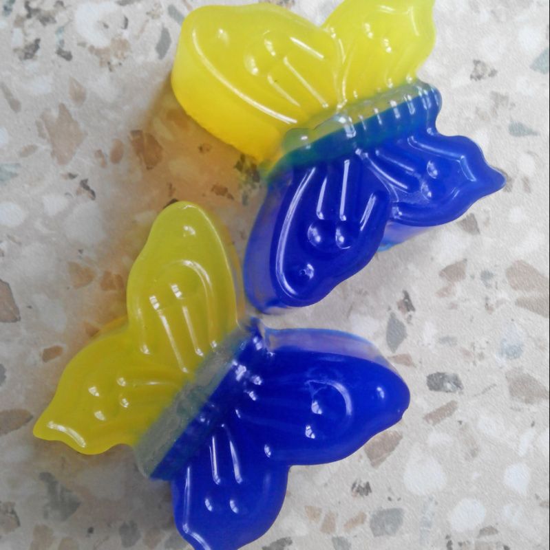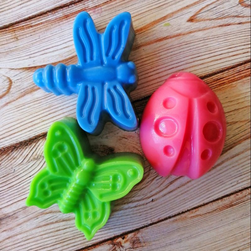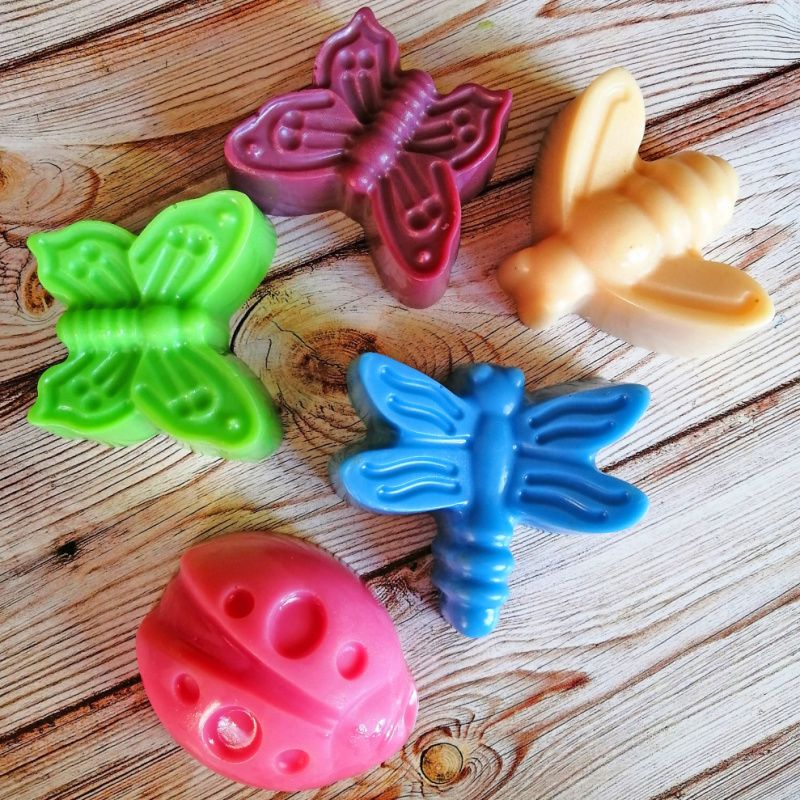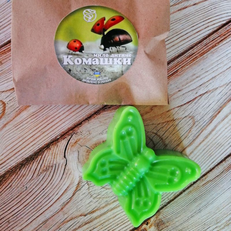 Мыло в виде букашек с натуральными растительными маслами, не сушит чувствительную детскую кожу, имеет приятный аромат. Вес 1 кусочка около 65-70г, есть четыре вида: бабочка, солнышко, пчелка, бабка. Вы можете выбирать желаемый цвет. Набор из 3-х кусочков в коробке - 120 грн; одно мыло в бумажном пакетике - 50 грн. Смотрите также (скопировать ссылку и вставить в строку поиска) Набор детского мыла https://zrk.ua/shop/bilosnizhna-zmiya/nabir-dityachogo-mila