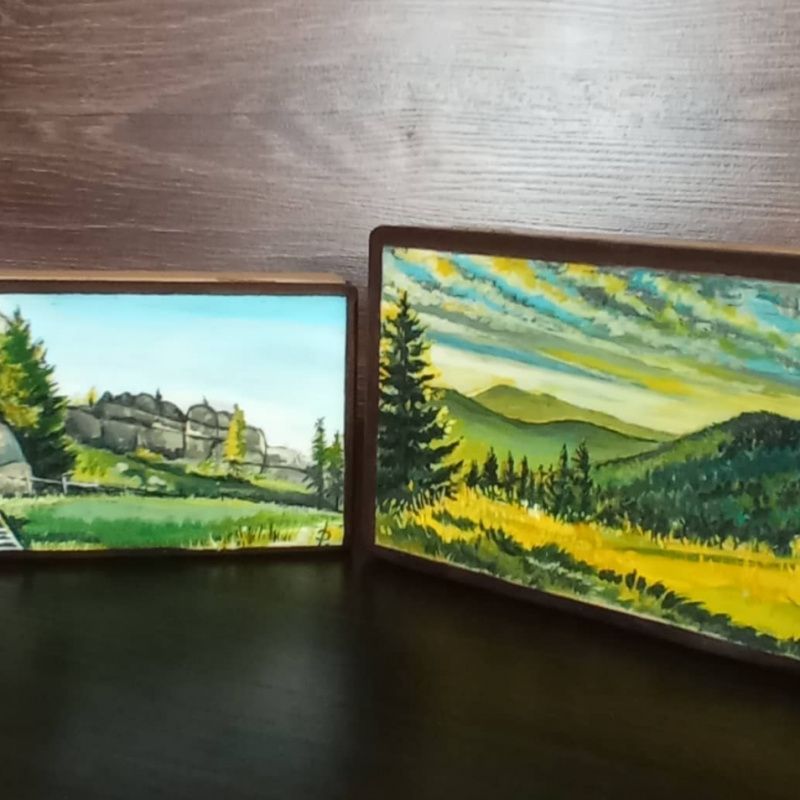 Продаються дерев'яні шкатулки ручної роботи. Розпис карпатських пейзажів акриловими фарбами
