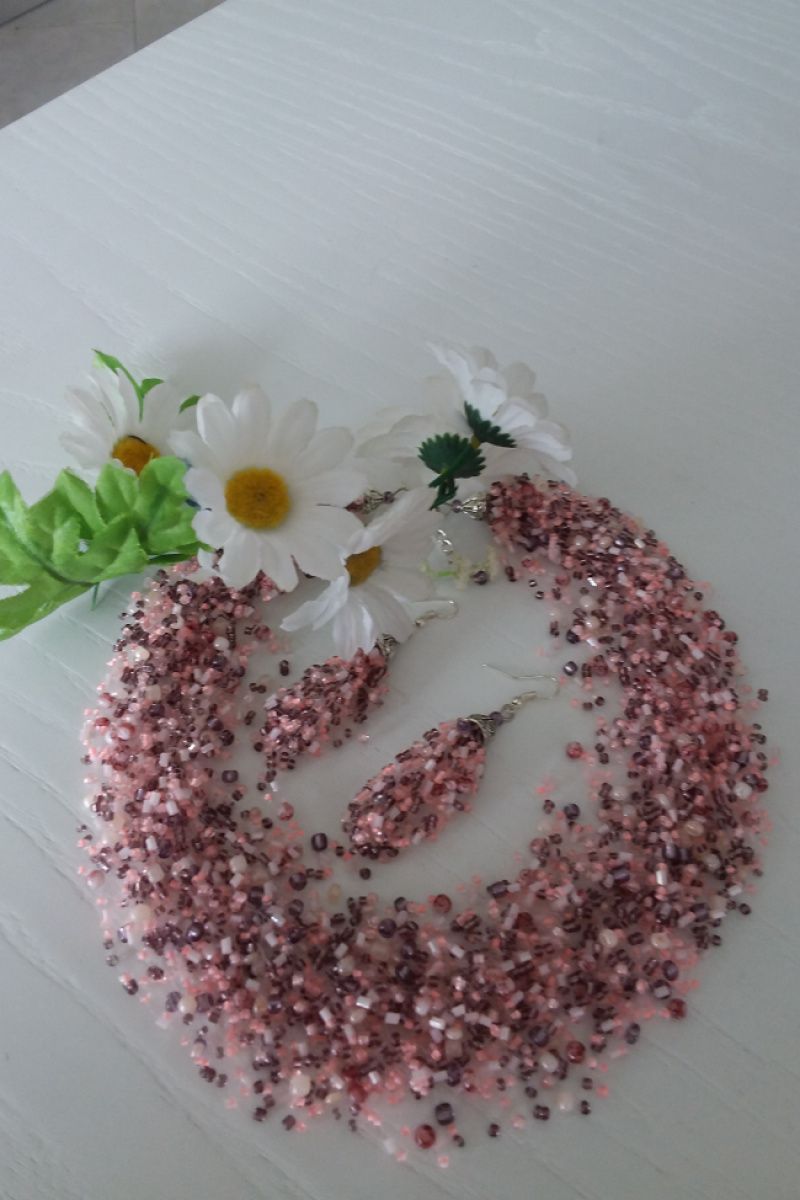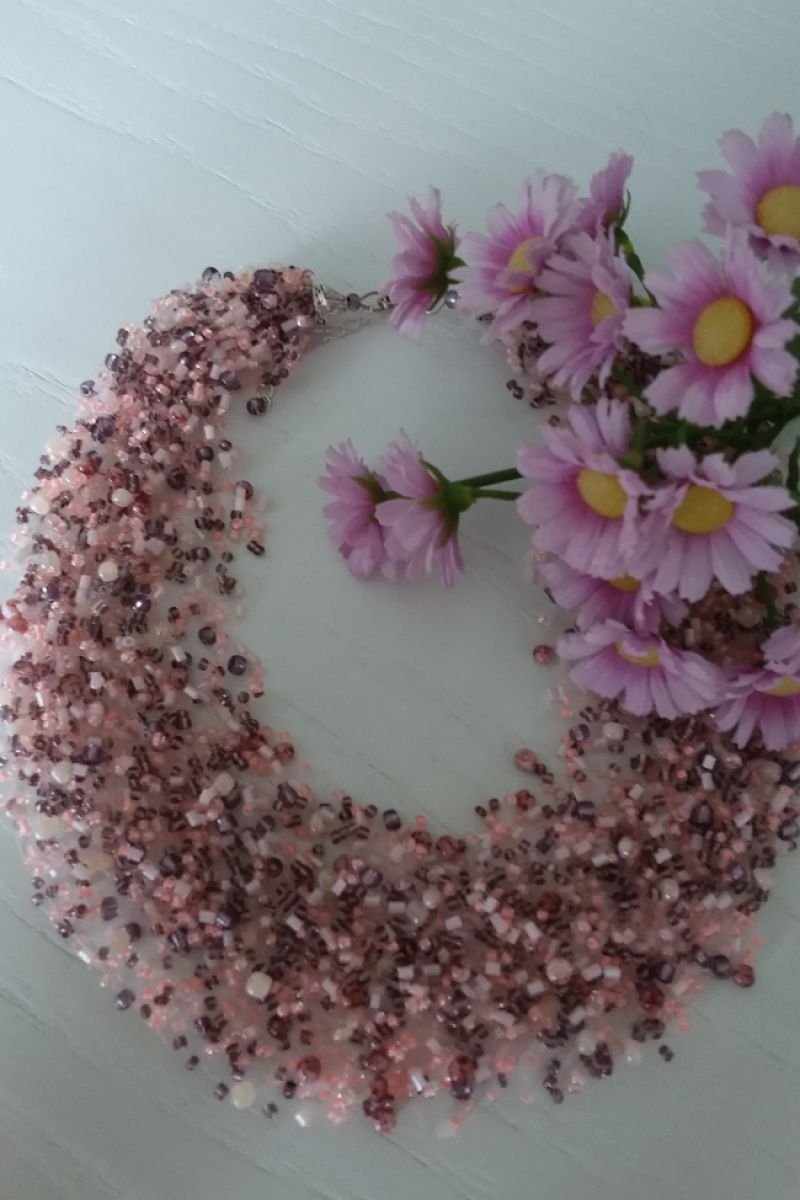 Нежное, и в то же время яркое, воздушное колье изготовлено из бисера разного цвета, разного размера и мраморных бусин под цвет бисера. Длина колье 46 см, есть цепочка-удлинение длины. Дополнительно можно заказать серьги идентичны колье. Заказывайте и носите с удовольствием!