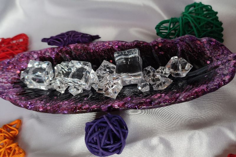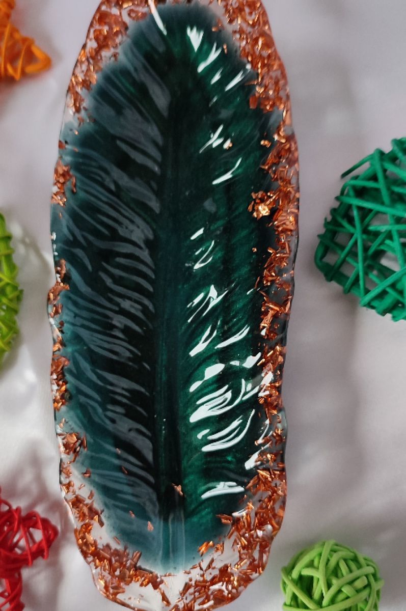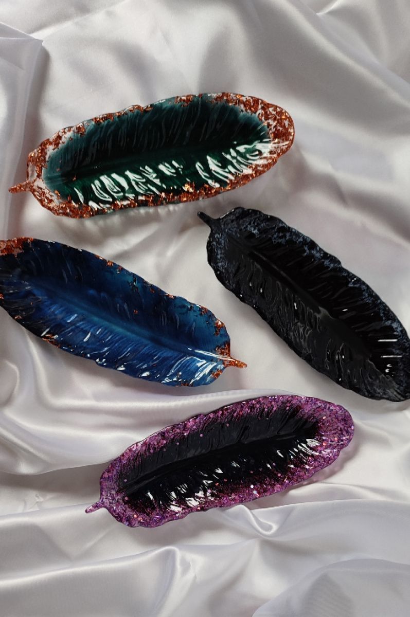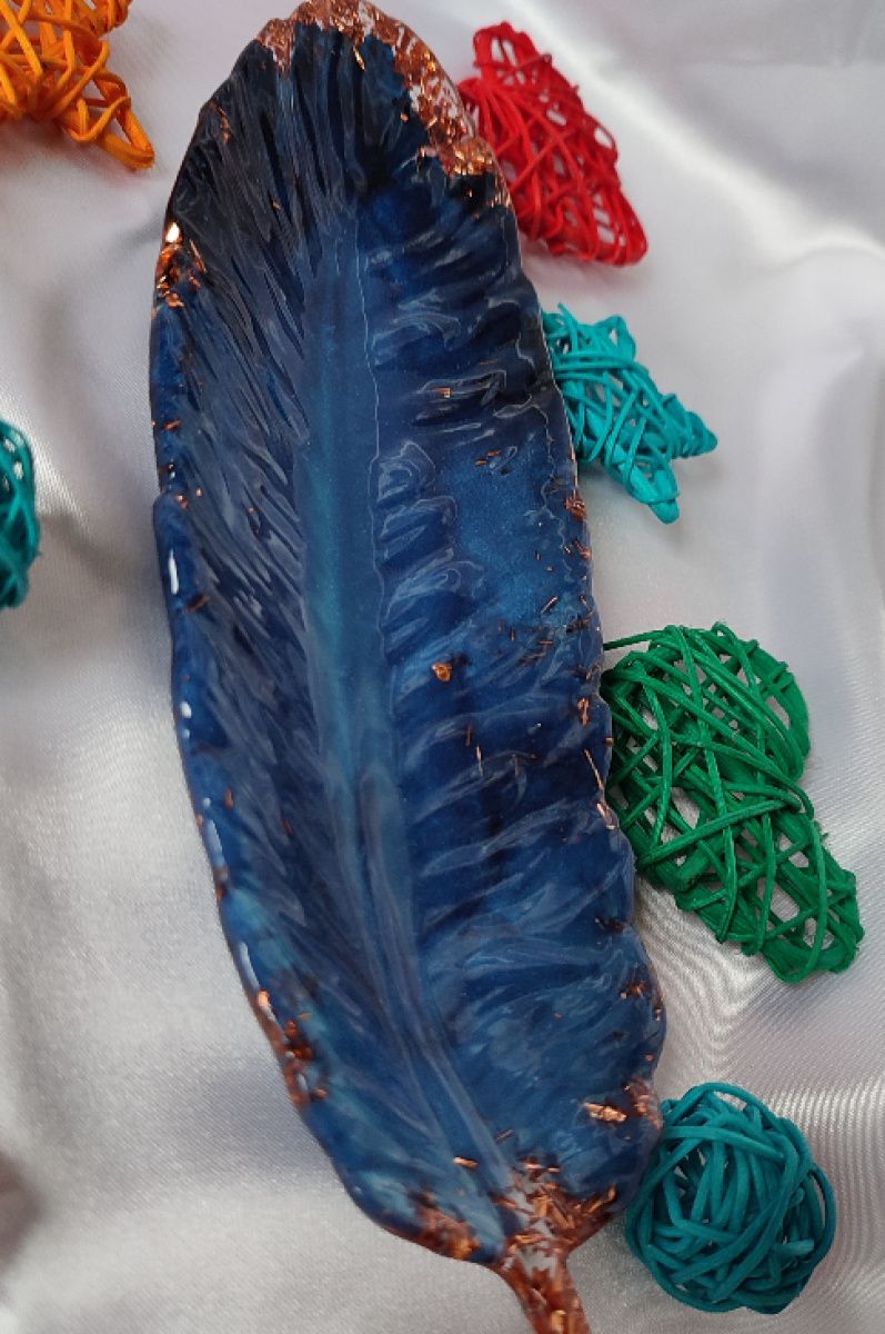 Подставка Перо выполнена из эпоксидной смолы и потали.