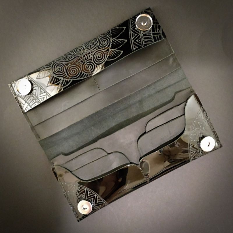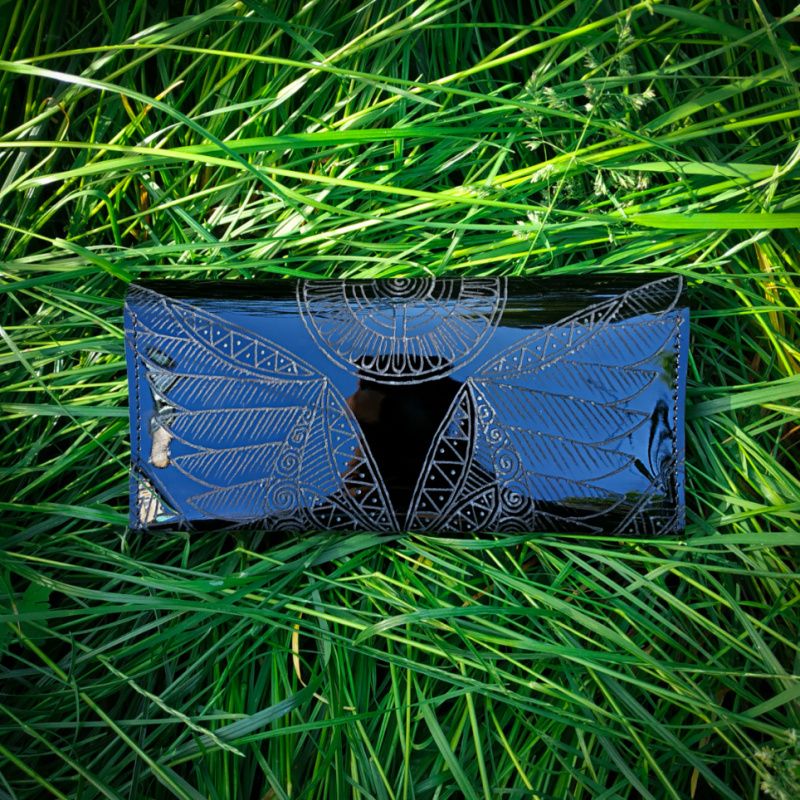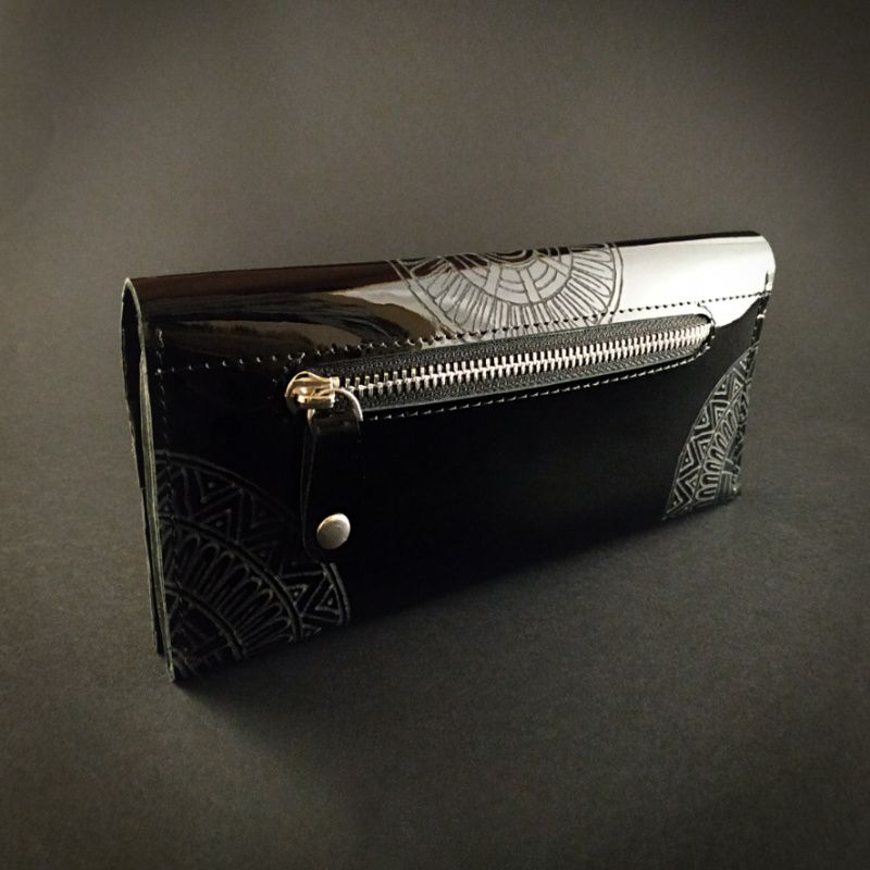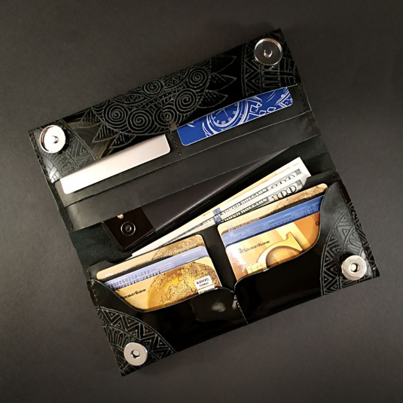 Этот изысканный и практичный кошелек из лакированной кожи и кожи Crazy Horse с ручной гравировкой будет радовать вас каждый день. Особенность кожи Crazy - винтаж. Есть скрабы и рисунок изгибов, что придает ему эффект старины. 100% натуральная кожа. Он также станет прекрасным подарком для друзей, дня рождения, юбилея, Дня святого Валентина, Рождество, выпуска, праздников, свадебный подарок и особого дня. Этот кошелек просторный: 10 слотов для карт, 2 полноразмерных слота для купюр, 1 слот может вместить даже ваш мобильный телефон. 1 карман для мелочи на молнии. Кошелек закрывается на жесткие магнитные кнопки.