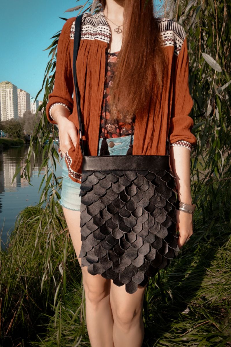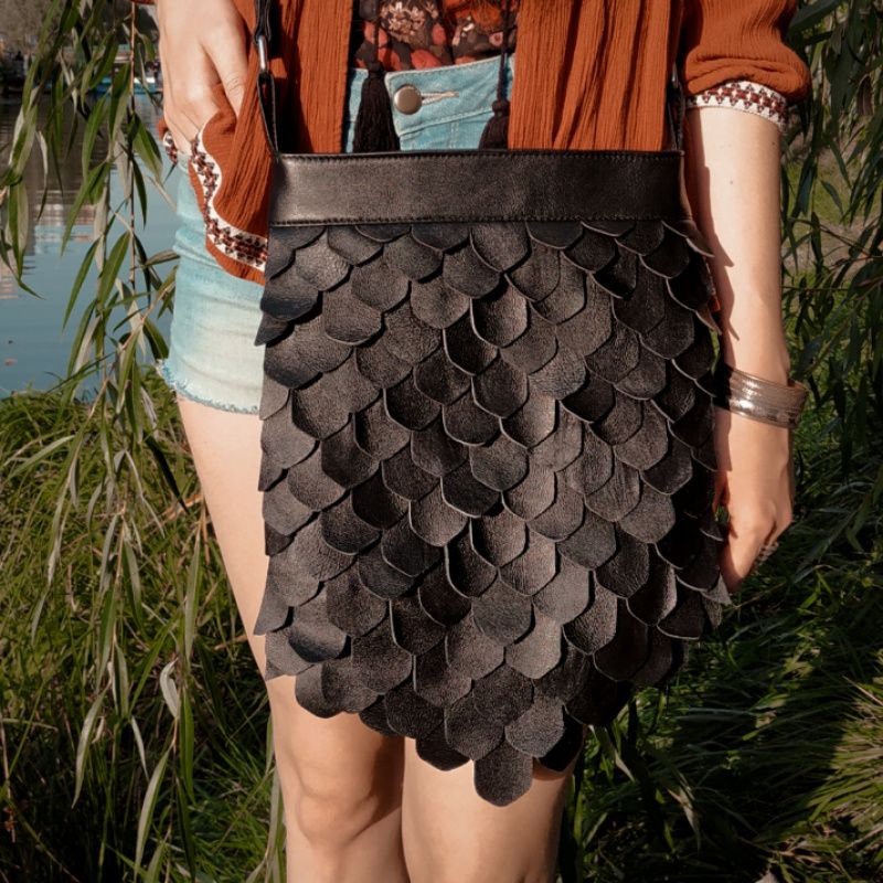 Кожаная сумка с чешуей, словно дракон, зажжет ваш яркий образ и не даст затеряться в толпе. Удобный и функциональный, он разработан, чтобы удовлетворить все ваши потребности. Очень надежный, идеально подходит для повседневного использования или путешествий. Куда бы вы ни пошли, с этой сумкой через плечо вас обязательно заметят. Это прекрасный подарок для себя или своих любимых! Эта уникальная и красивая сумка через плечо отделана кожей. Он застегивается на молнию сверху и имеет внутреннюю подкладку. В этой сумки регулируемый ремешок. Внутри есть один небольшой карман.