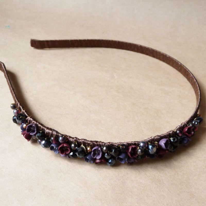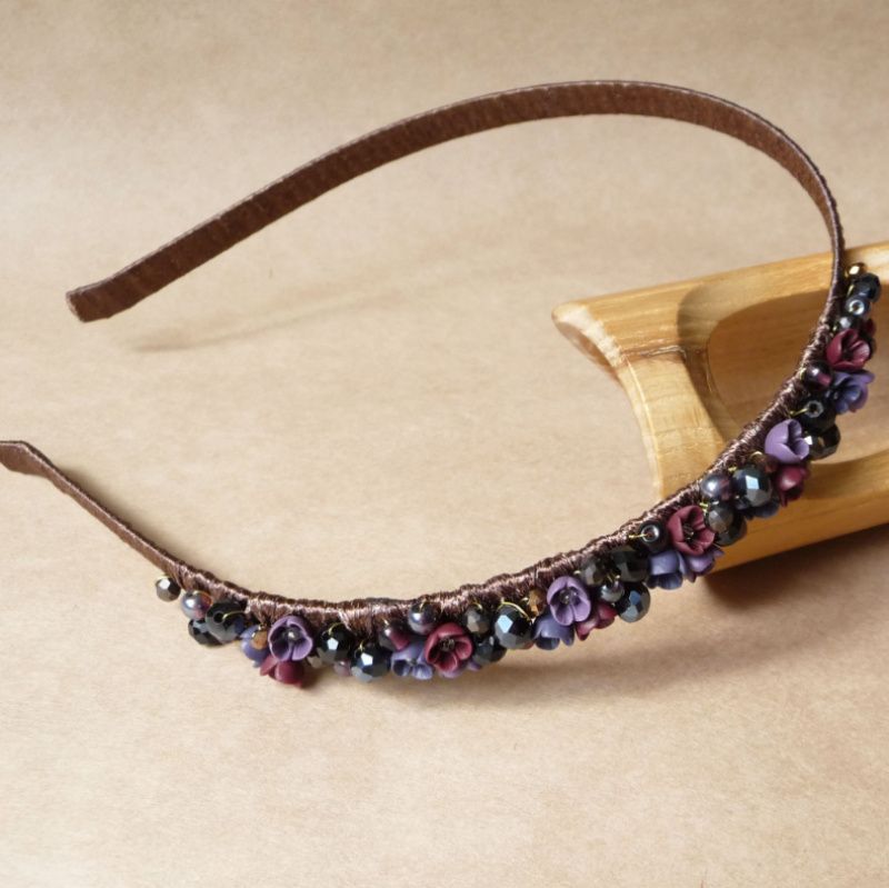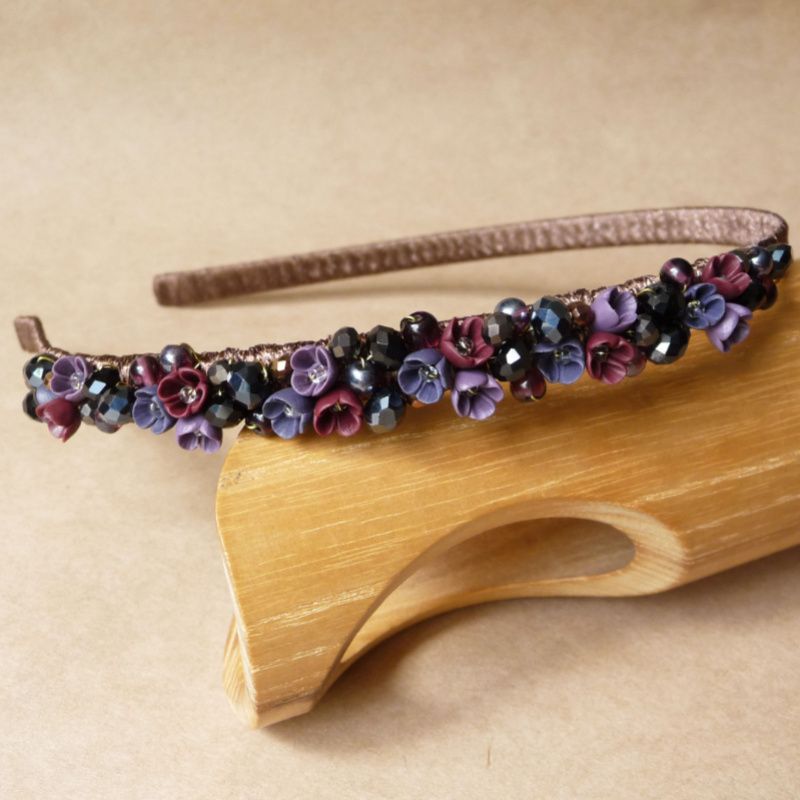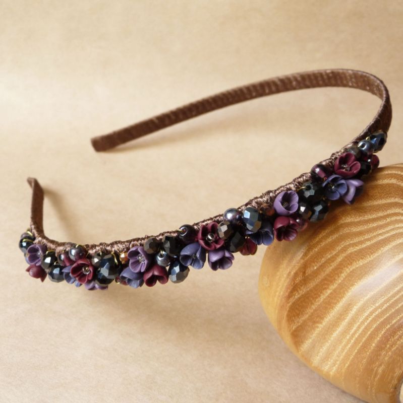 Обруч с миниатюрными цветами ручной работы из полимерной глины.